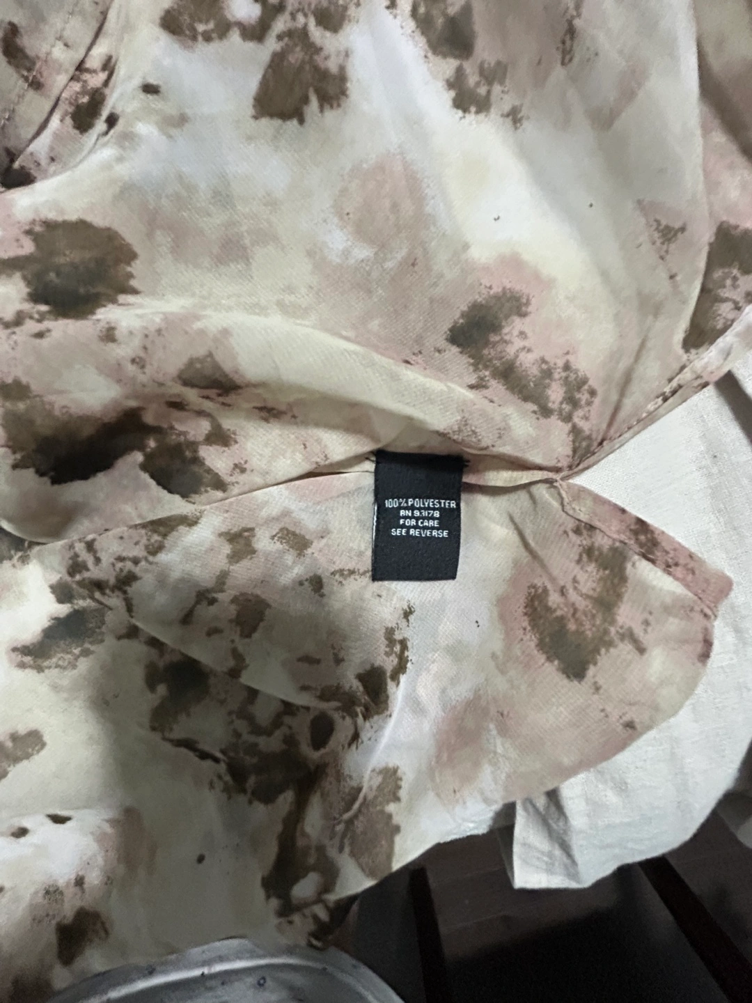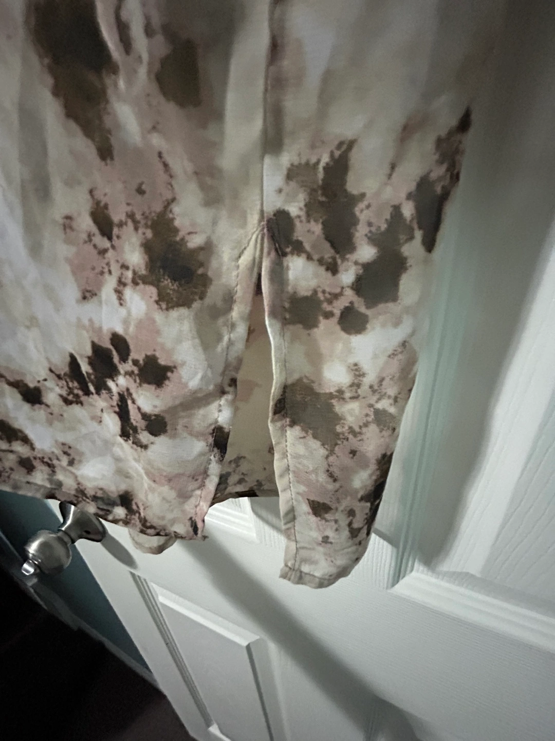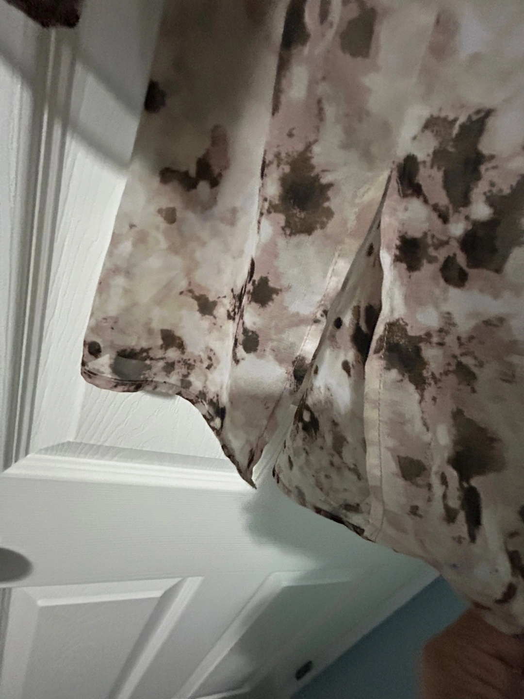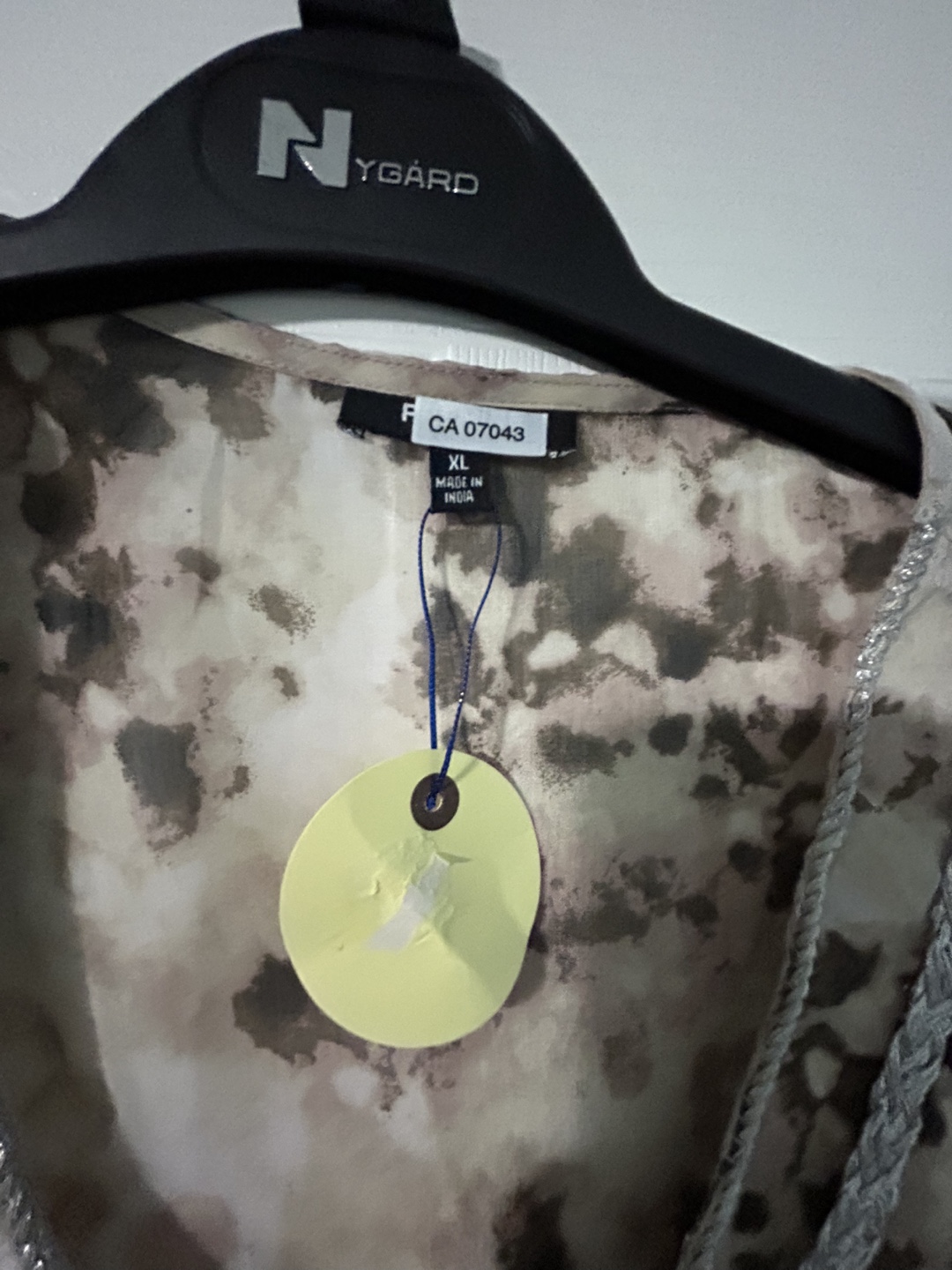 beautiful brown and beige pattern with silver detailing around the neckline. A chiffon like material with slits on the side. Great as a tunic or even a beach wear