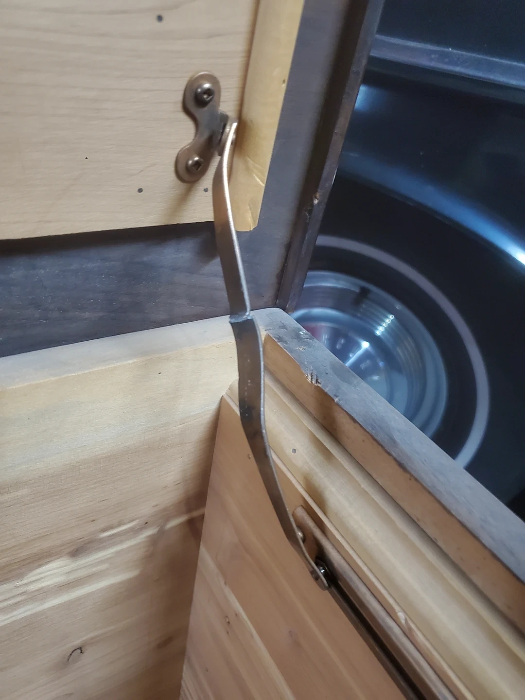 Chest interior is really clean condition, the lid support swing arm that holds it open has snapped and needs to be replaced.