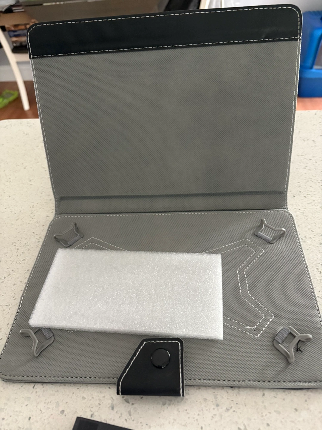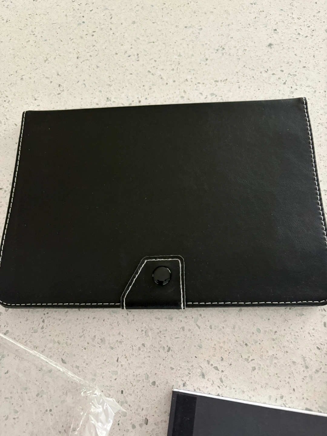 34Selling a black tablet case. Brand new, never used and has a button closure.