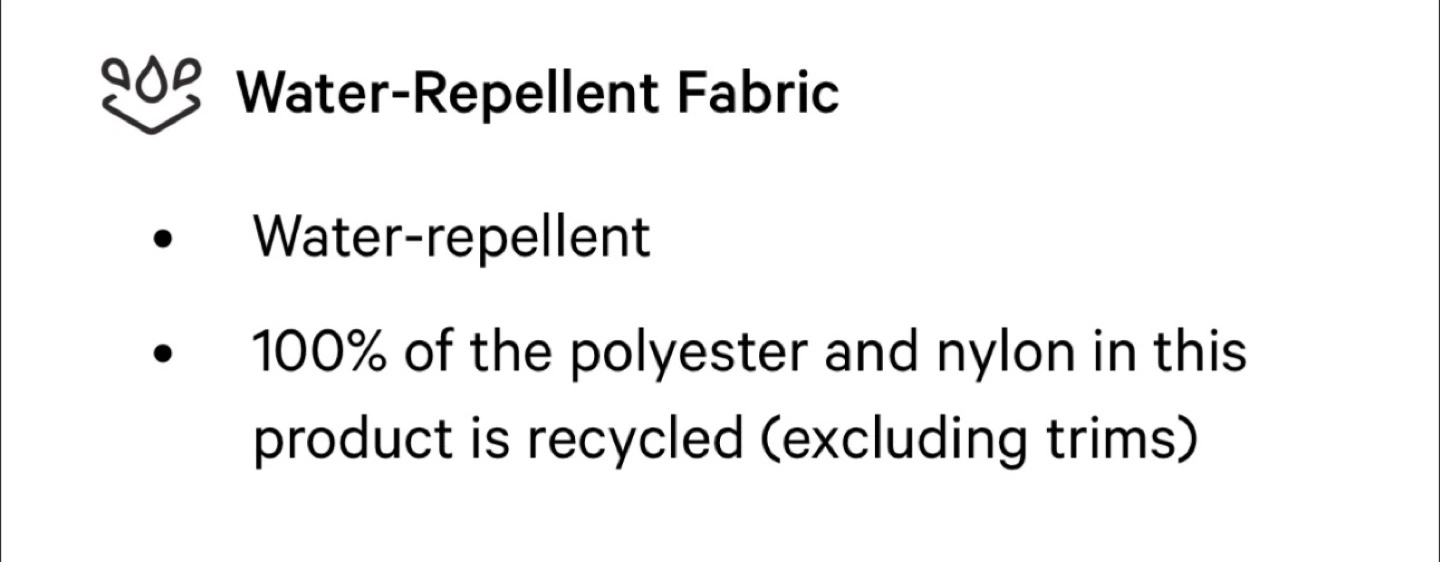 Great for everyday use. water repellent fabric