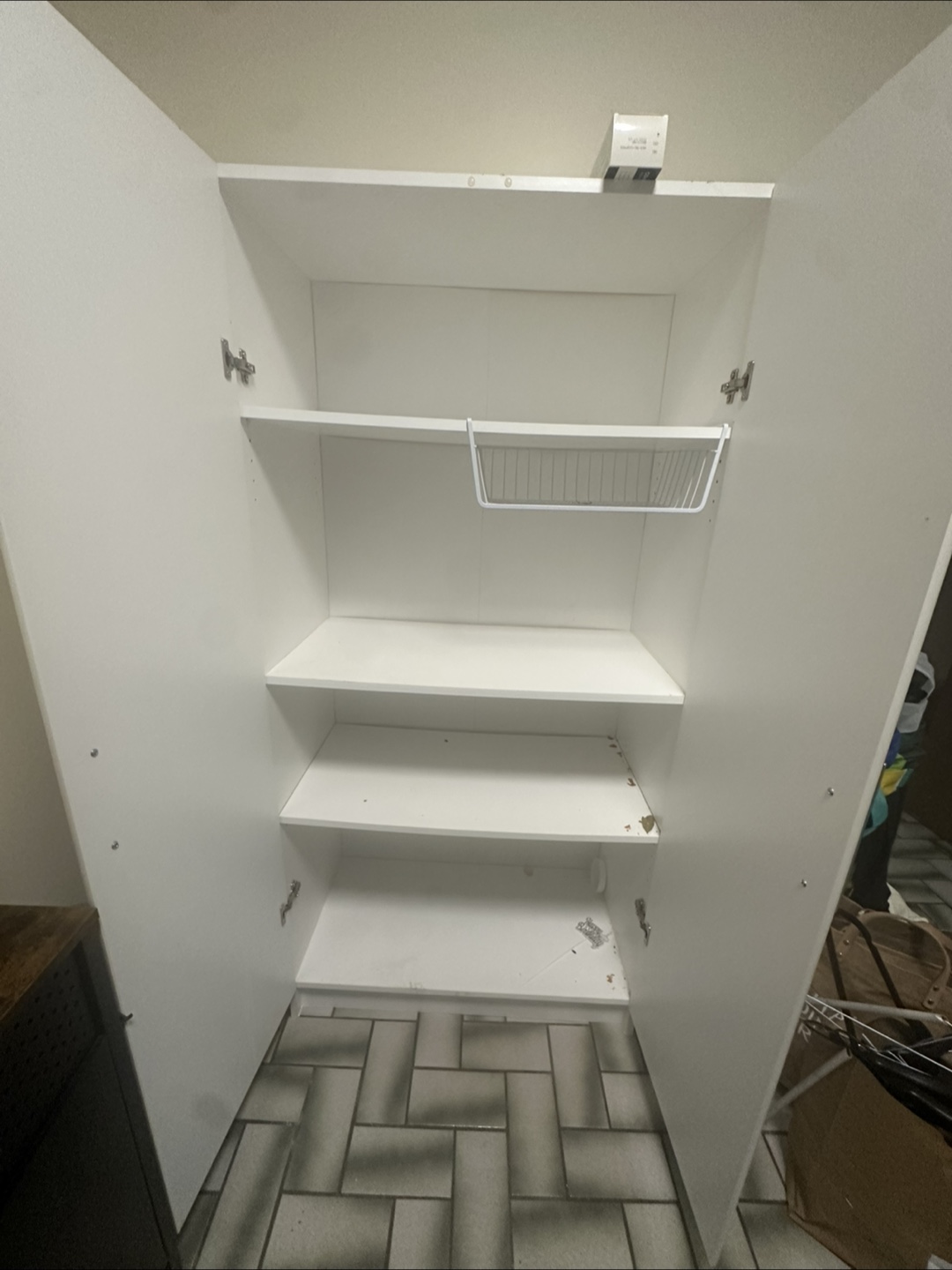 Selling a white pantry cabinet. It's in good condition and perfect for extra kitchen storage.