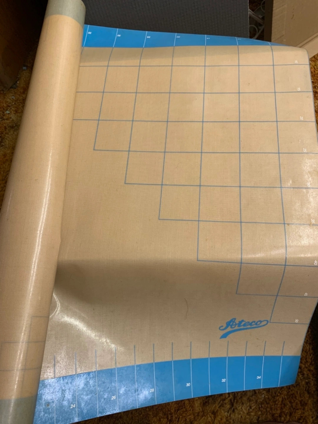 I'm selling an Ateco fondant mat. It features a grid pattern for precise measurements and is in good condition. 50 cm x 85 cm, or 21”x35”. Perfect for all your cake decorating needs!