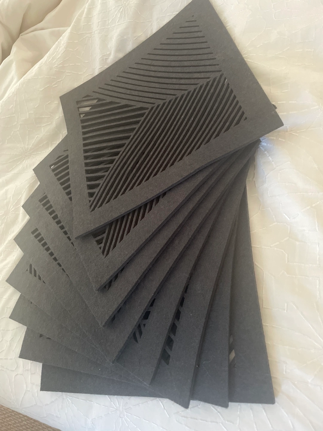 Selling a set of 8 black geometric felt placemats! They're in great condition and would add a modern touch to your dining table. Bought at $10 a piece. All 8 for $40