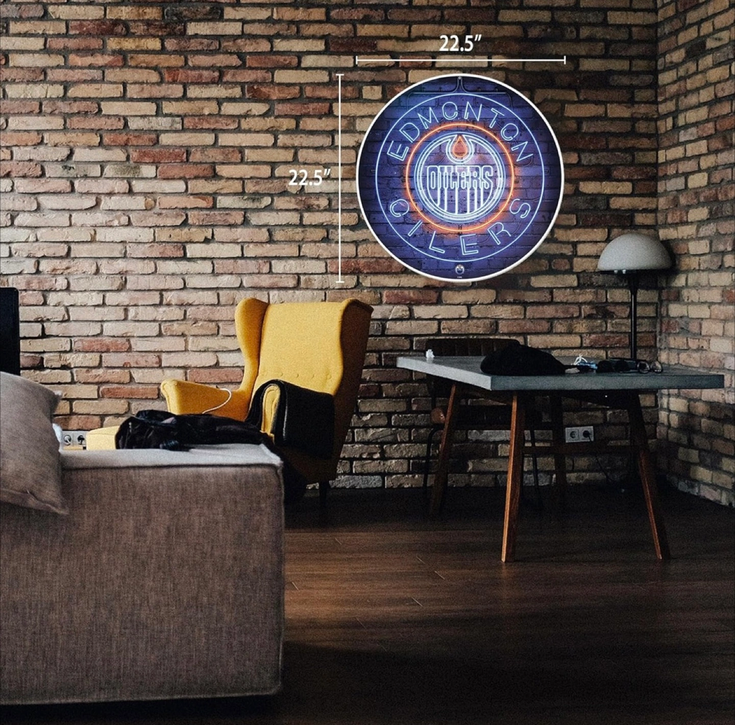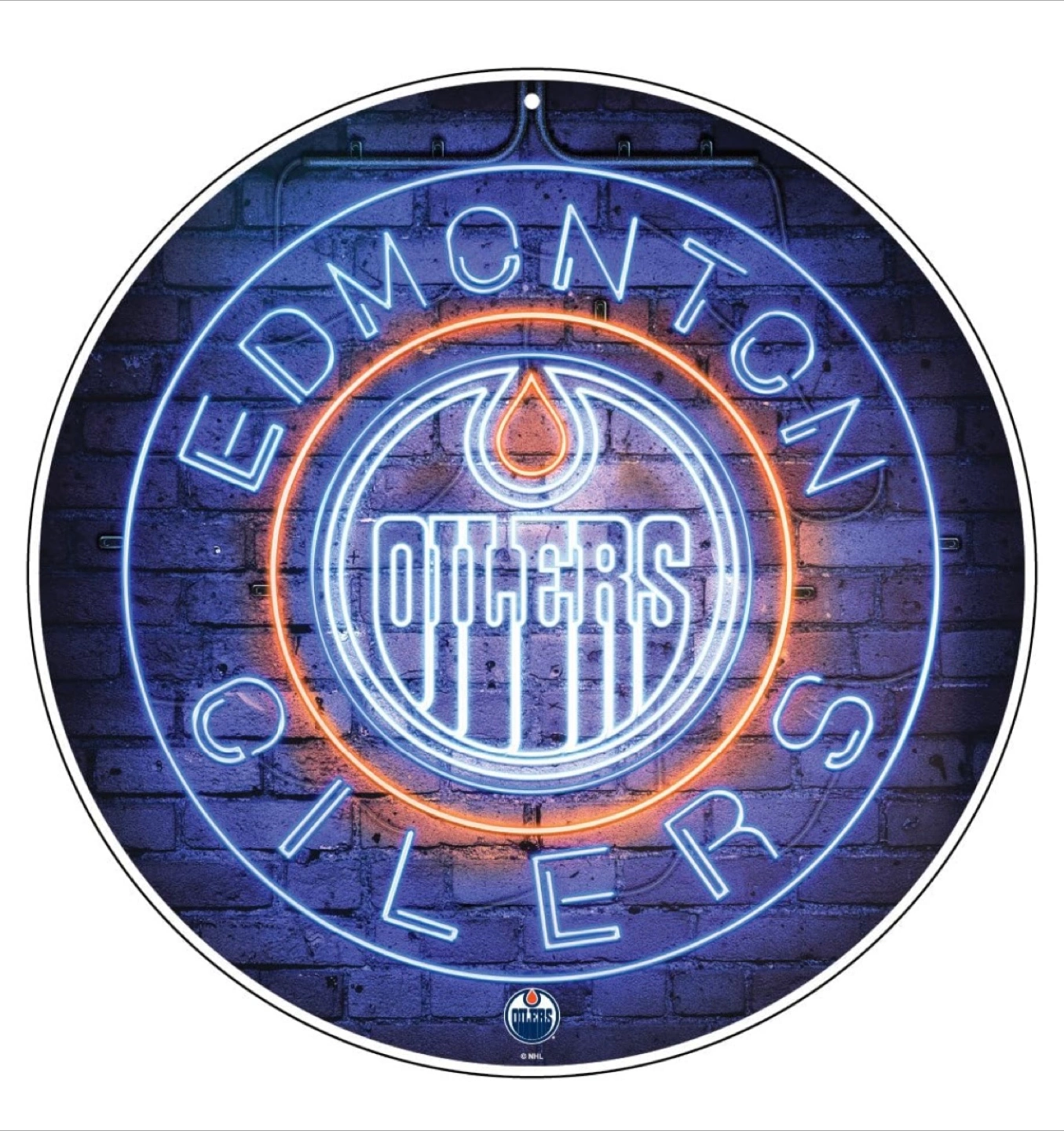 Add some team spirit to your space with this Edmonton Oilers neon wall decor! It's a 22.5-inch round sign featuring the Oilers logo in vibrant neon lights. Perfect for a game room, bar, or any Oilers fan's space