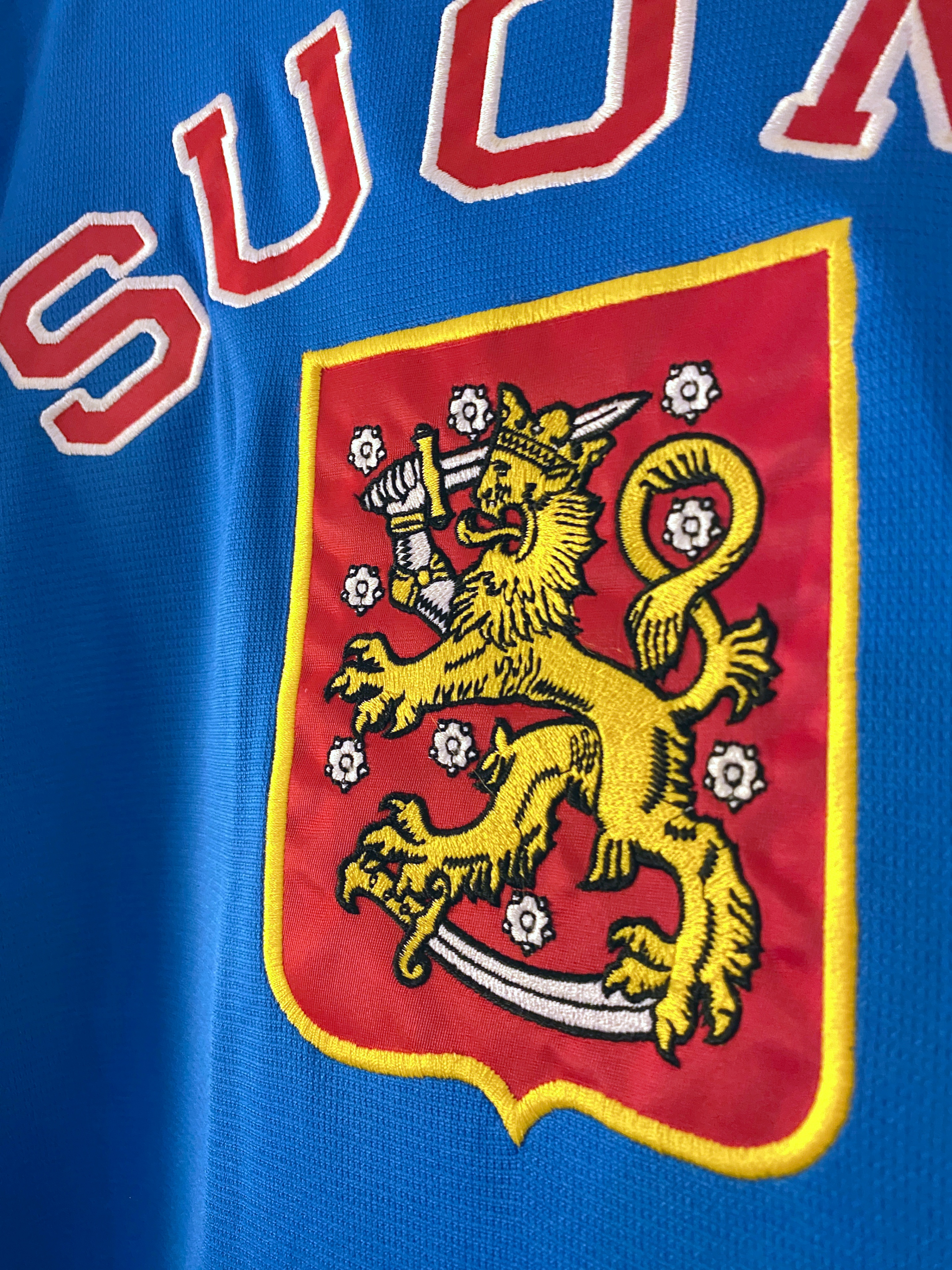 Worn by sumi trailblazers Saku and Teemu and backstopped by young kip en route to a Olympic Bronze. 'Twas a fine team.