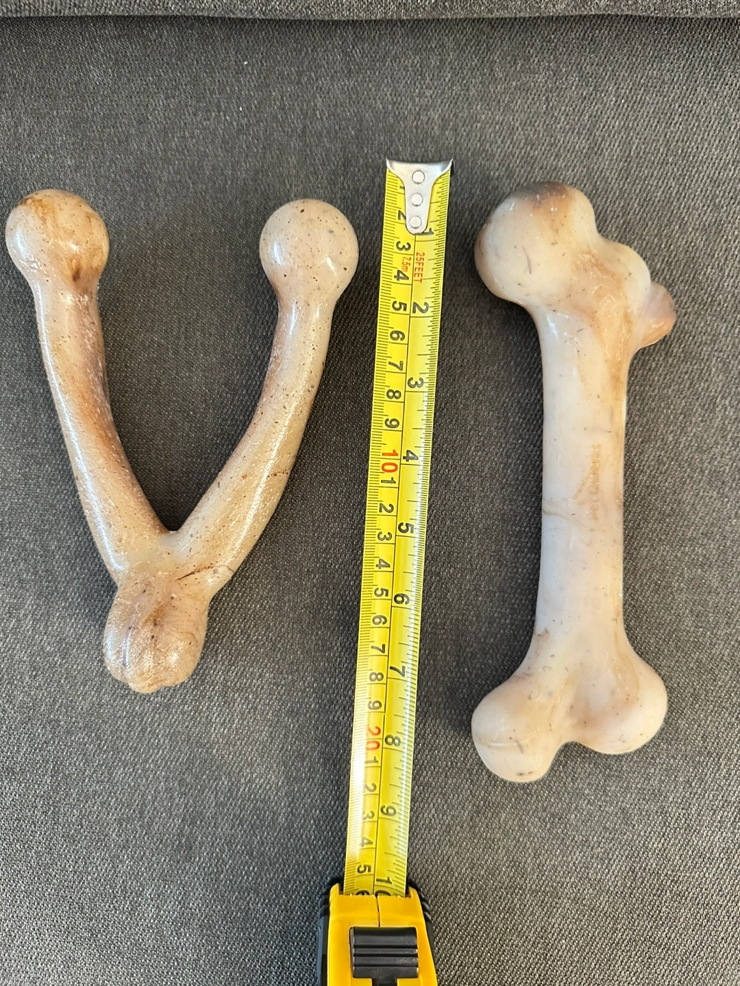 Selling two large dog chew toys! One is shaped like a bone, and the other is shaped like a wishbone.