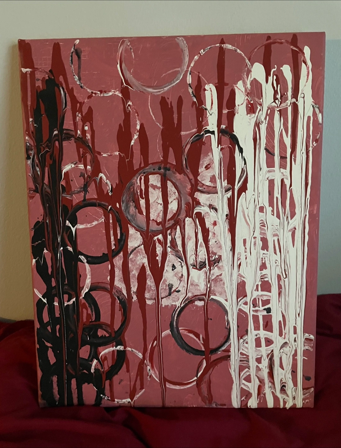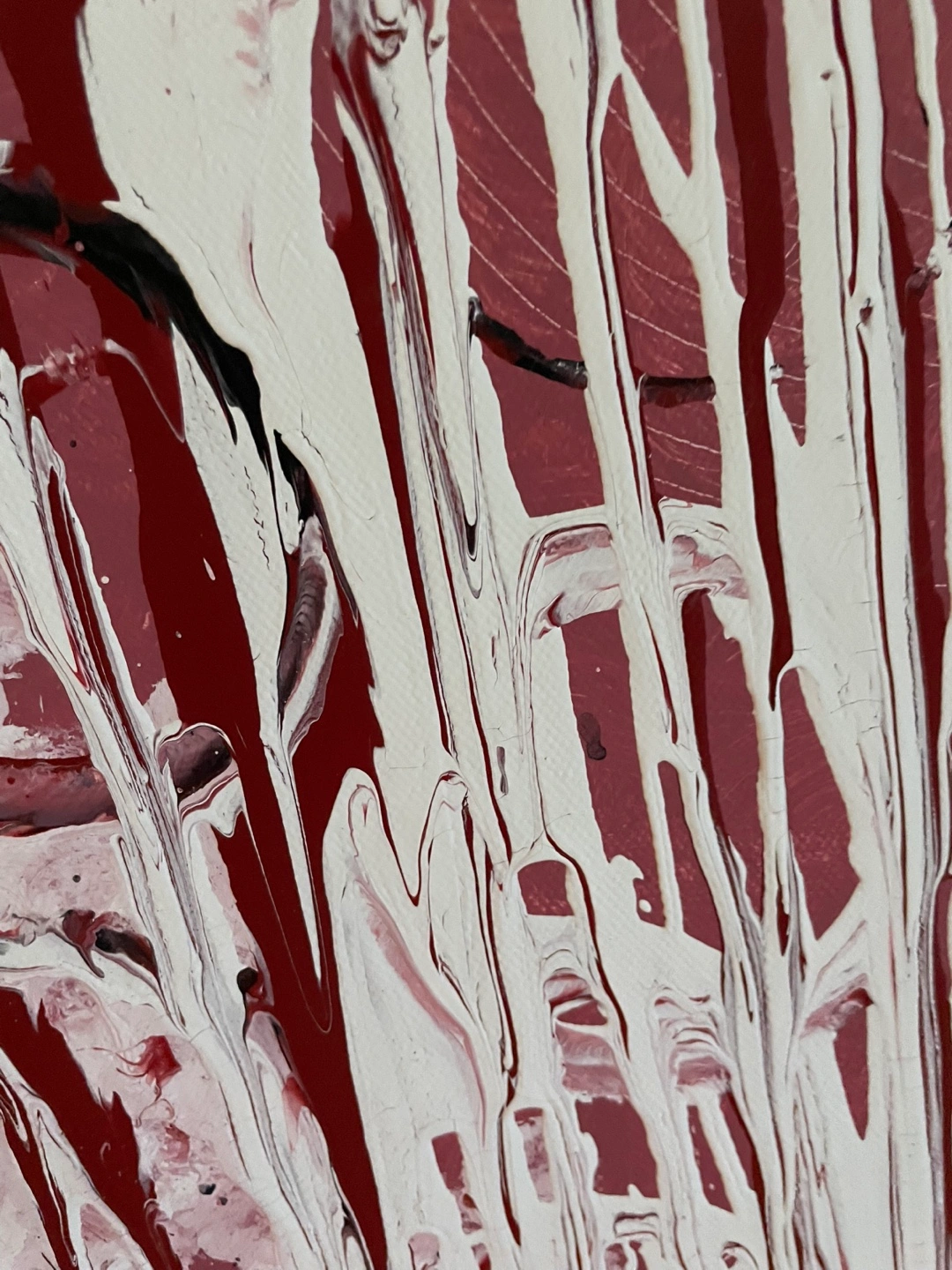 🇨🇦🍁Here's a unique original abstract art painting! It features a mix of white, black, and red paint on a canvas. The painting has a cool, modern look that would add character to any room