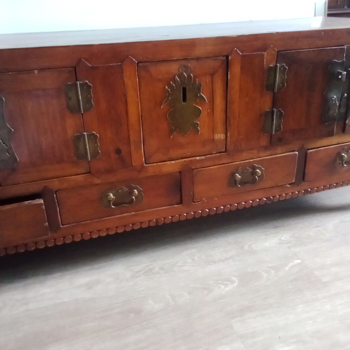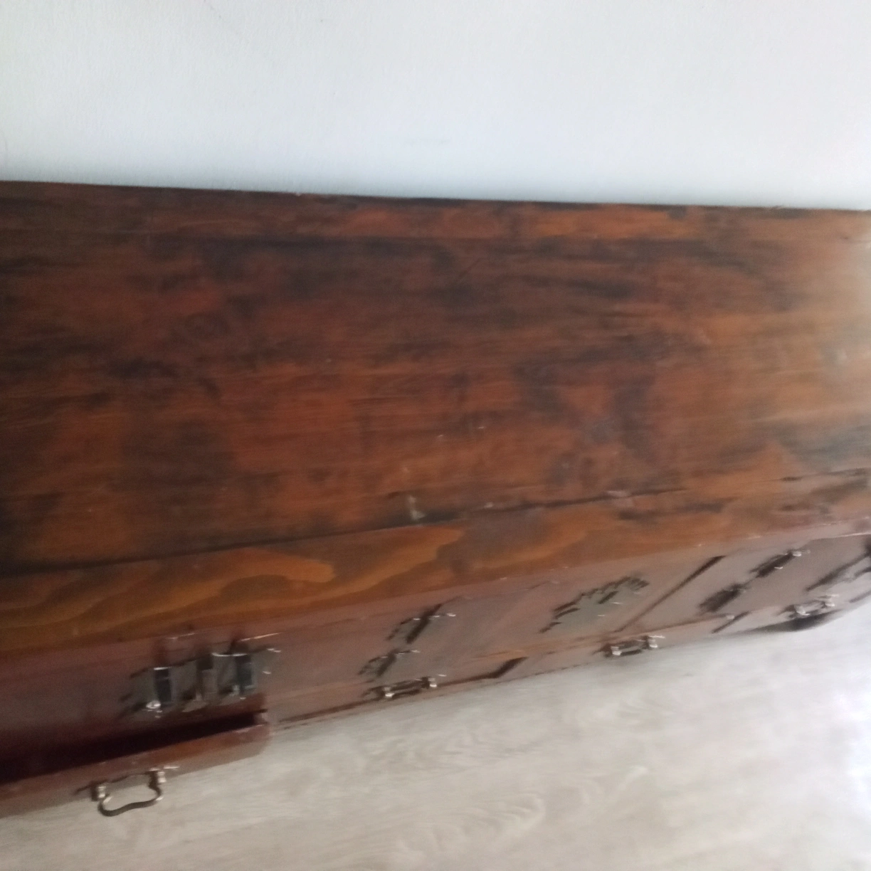 Selling a beautiful northern district Chinese antique wooden chest/cabinet. It has a unique design with multiple drawers and doors, perfect for adding a vintage touch to your home. The wood has a rich, warm tone, and the metal hardware adds to its character. It's a great piece for storage and display