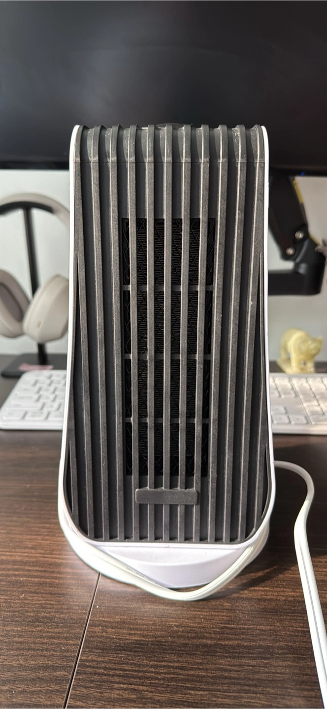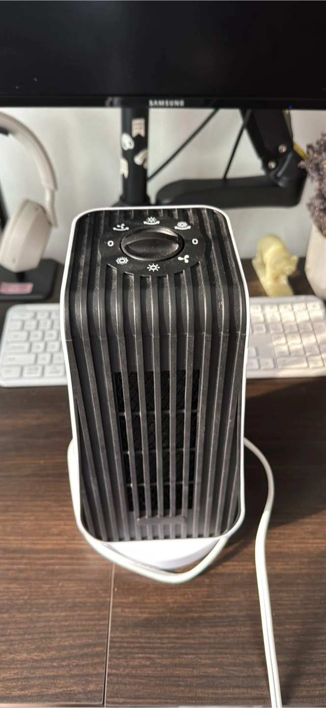 Selling a portable tower fan in black and white. It's in great condition and perfect for keeping cool during the summer months! It has multiple settings for adjusting the airflow to your liking and heating feature for the winter time. Barely used