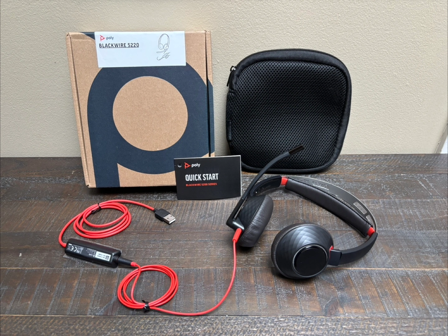 Selling a Poly Blackwire 5220 headset in new condition! Never been used. This comes with its original box and a handy carrying case.