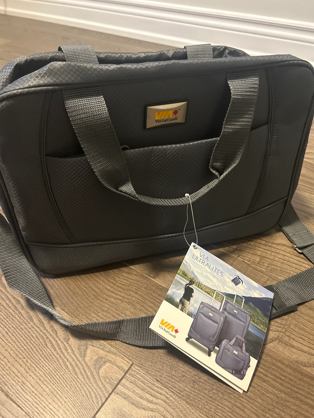 Selling a VIA Rail Ultralites tote bag, model V1316. It's in brand new condition and ready for your next trip! The bag measures 15.5" x 11" x 5.2".