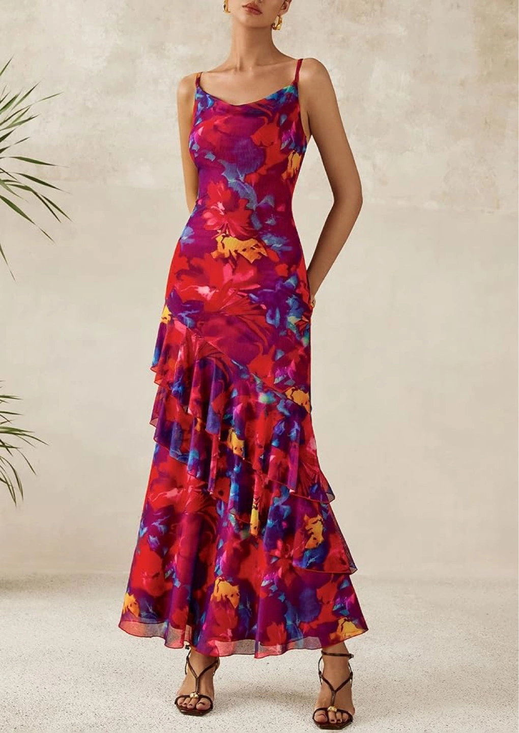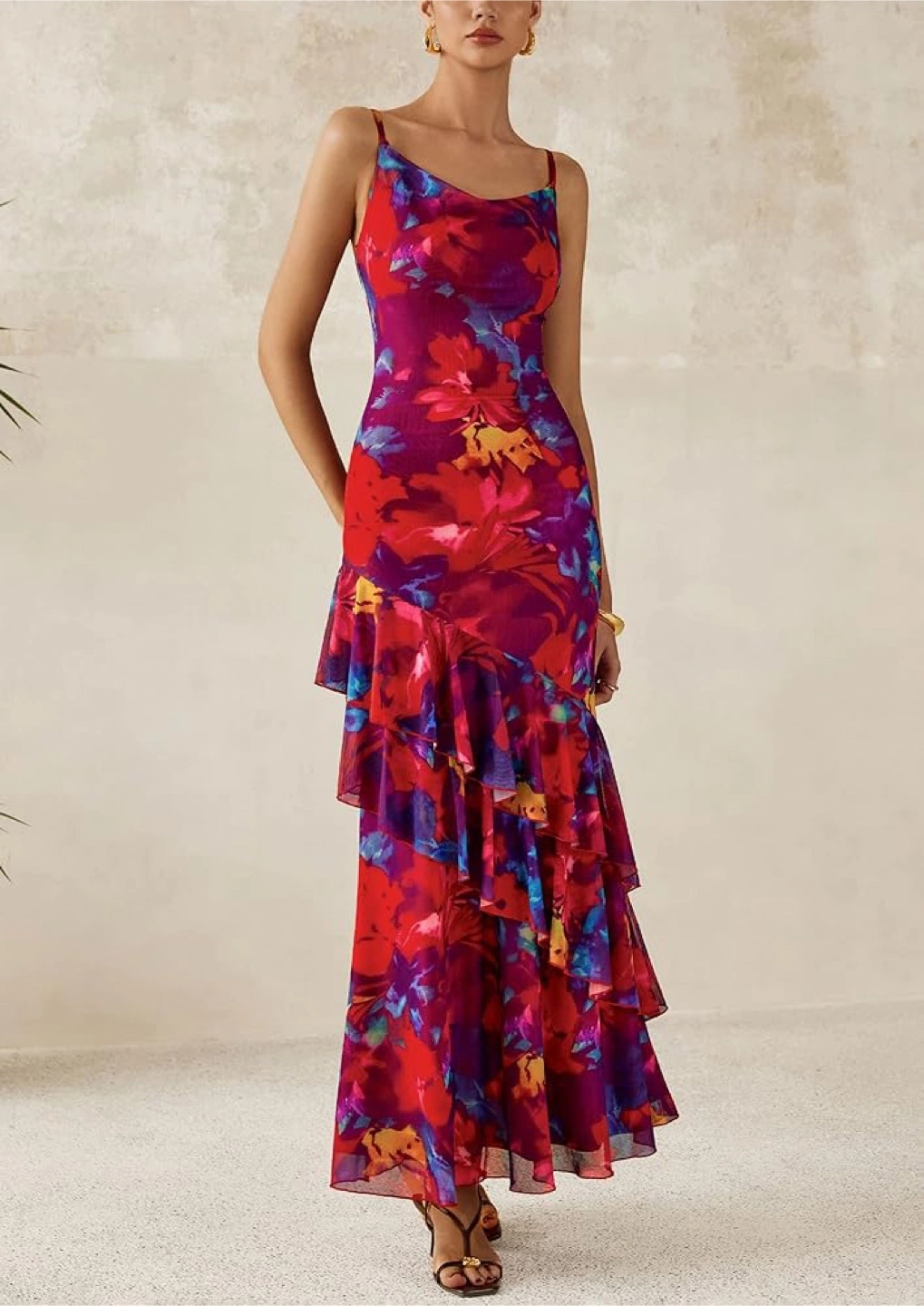 New Tiered Floral Beach Sundress with Spaghetti Strap