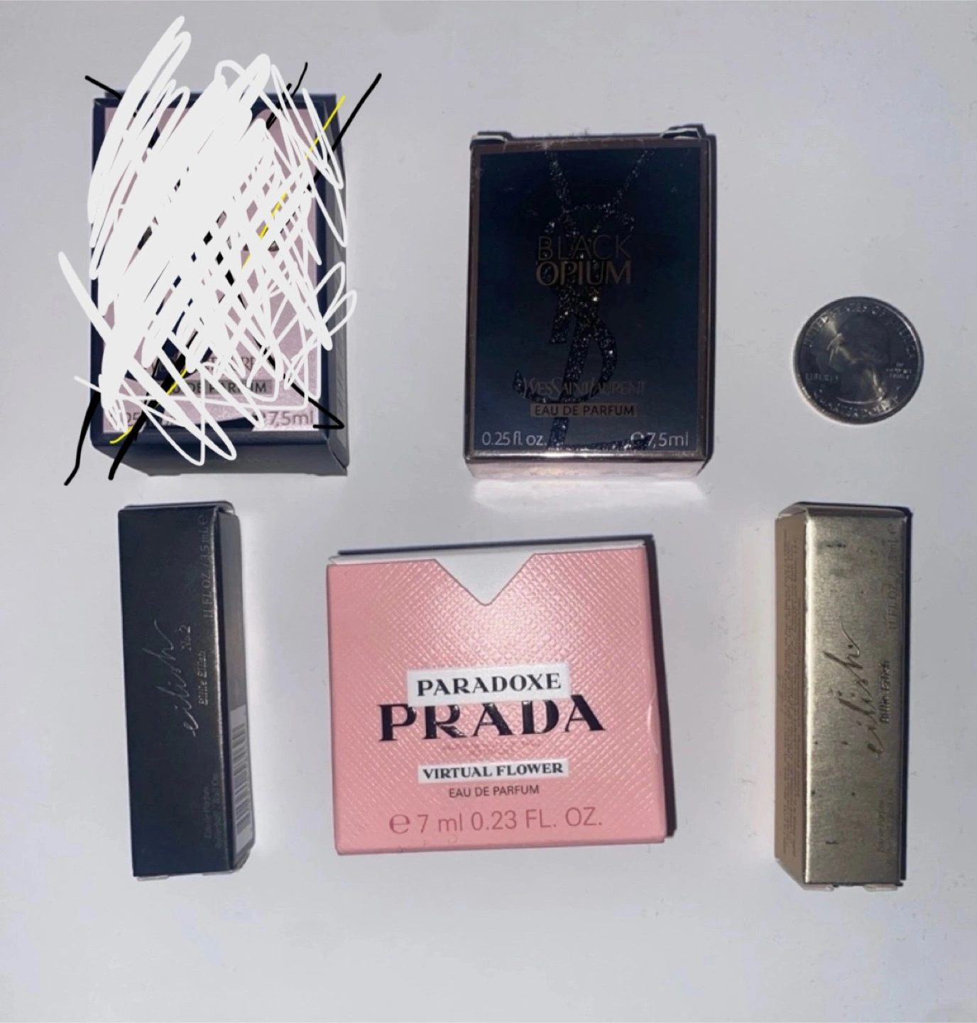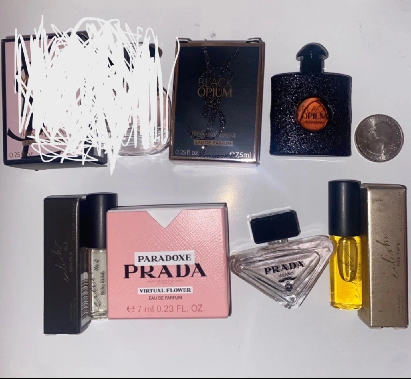 Selling a mini perfume set! Includes YSL Black Opium and Prada Paradoxe Virtual Flower Eau de Parfum. Both are 0.23-0.25 fl oz
