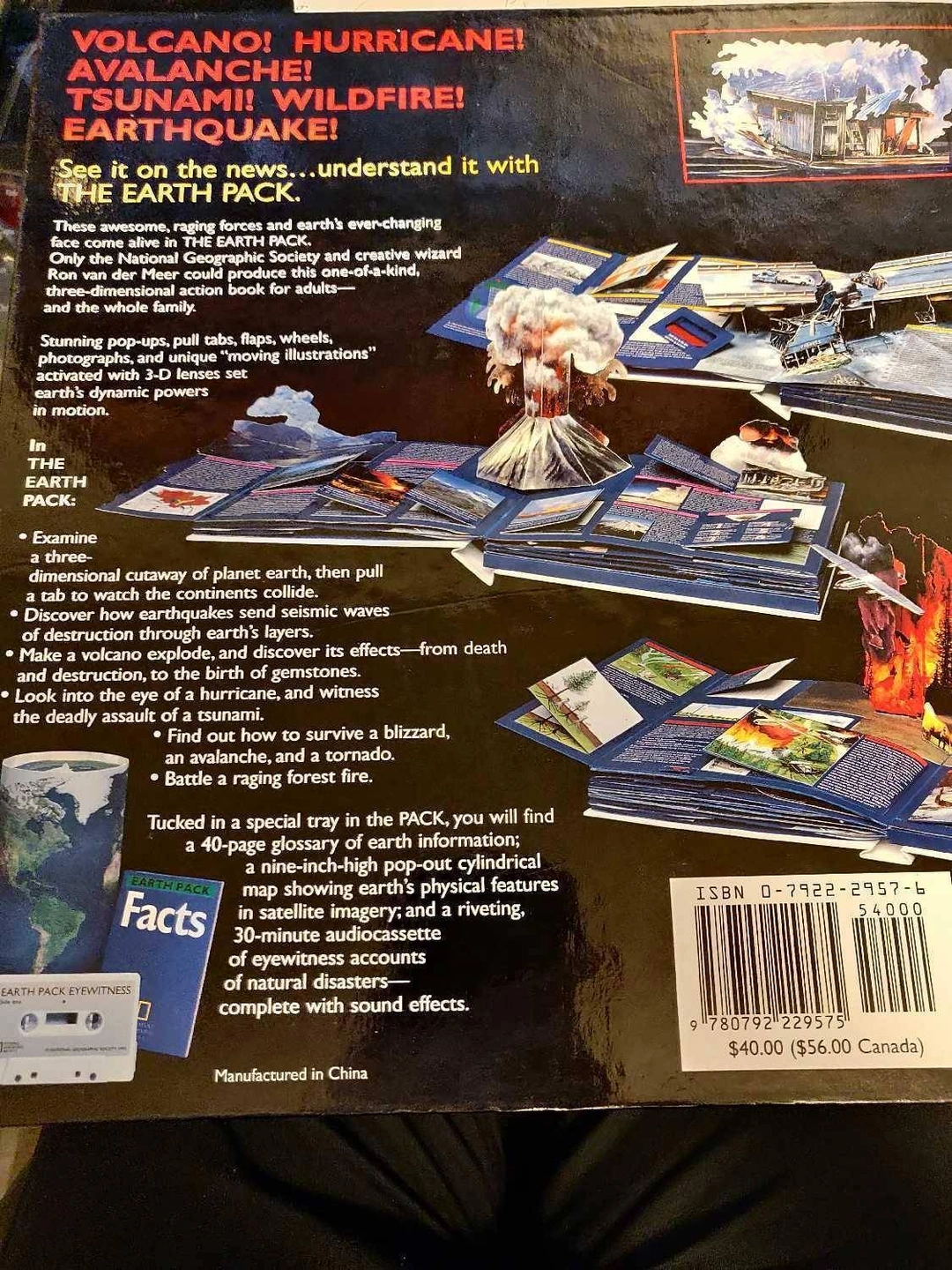 174I am selling The Earth Pack: A Three-Dimensional Action Book by the National Geographic Society in excellent condition. No tears or missing pieces, just a slight dent on the cover corner (see pictures). Tornadoes, earthquakes, volcanoes, Nature's forces in three dimensions. Stunning pop-ups, pull tabs, flaps, wheels, photographs, and unique "moving illustrations" activated with 3-D lenses set earth's dynamic powers in motion. Authors: Ron van der Meer and Ron Fisher Pages: 16 Comes from a pet and smoke-free environment. Pickup in Mount Pleasant (NW Calgary)