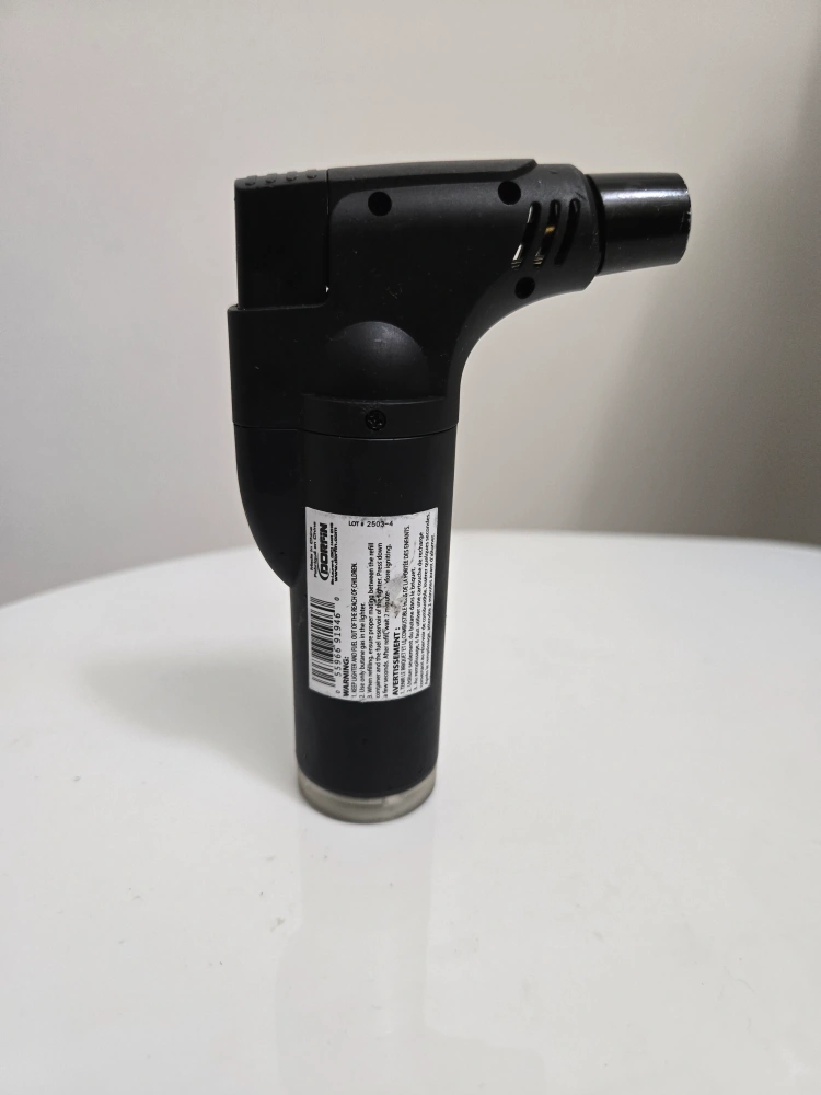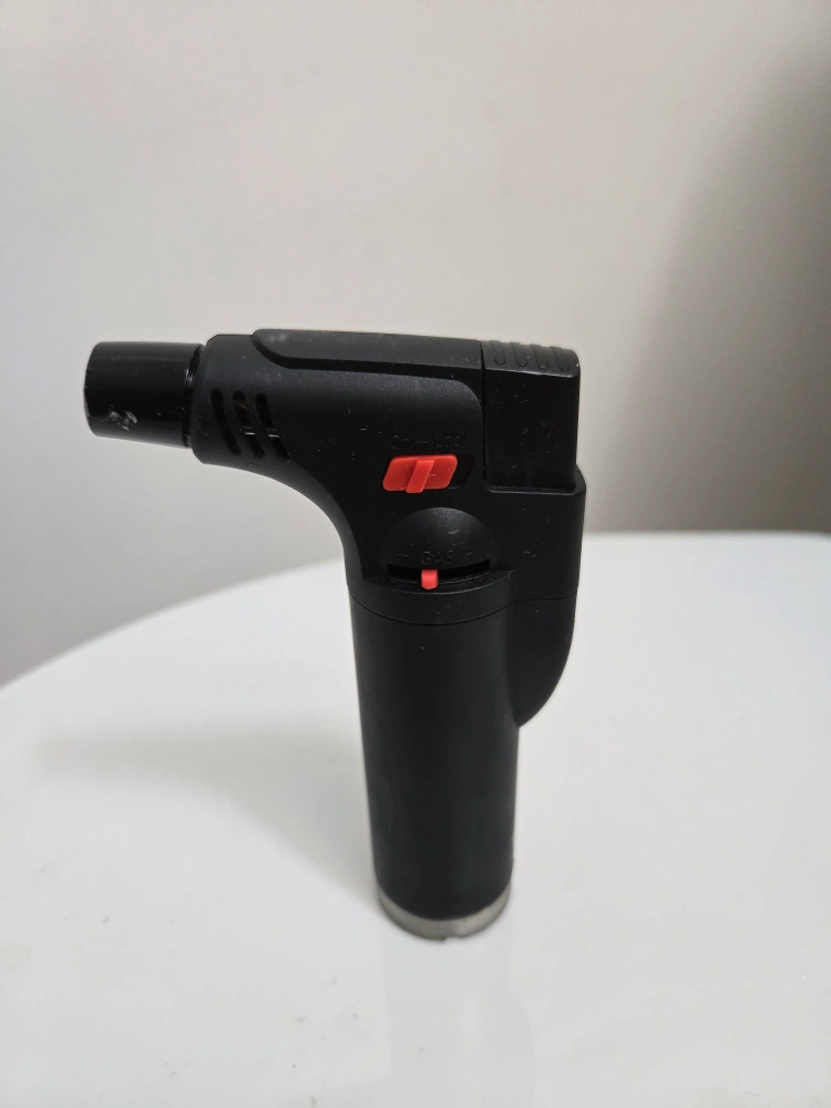 I'm selling a black culinary torch. It's perfect for caramelizing sugar, searing meats, or any other kitchen task that requires a quick burst of heat. It's in great condition and ready to use!