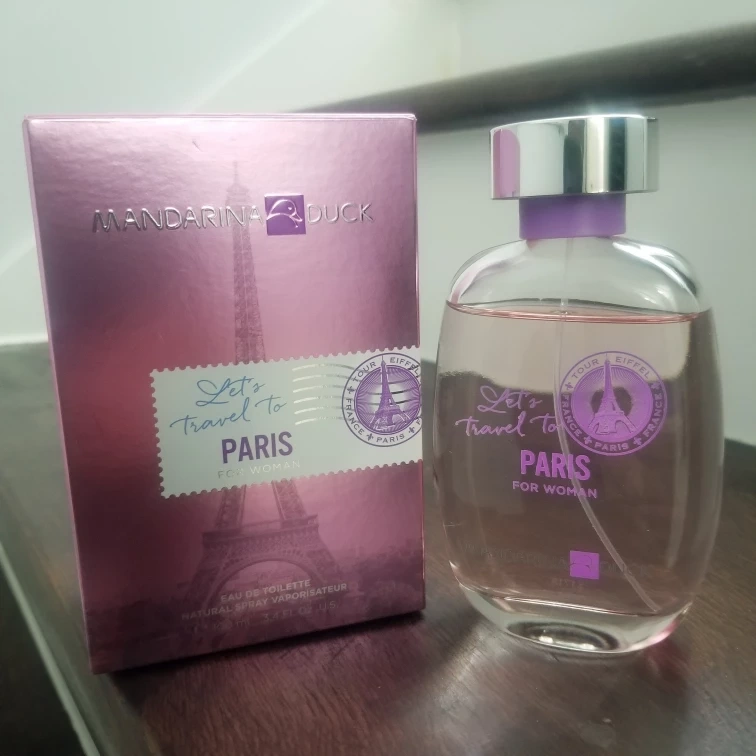 Selling a Mandarina Duck Let's Travel To Paris perfume for women. It's a 100ml Eau de Toilette. The batch number is 374152. The perfume was manufactured in France.
