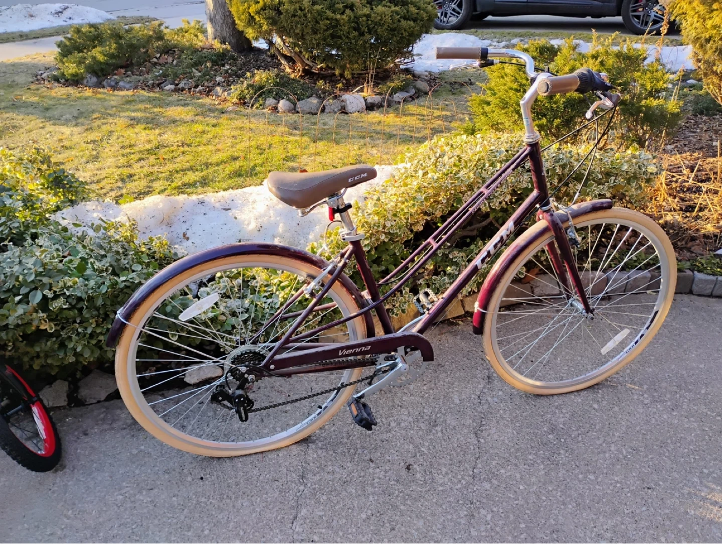 Selling a CCM Vienna Hybrid Bike in pink & beige, 700C. Never been used before. Purchased back in 2021 @ Canadian tire.