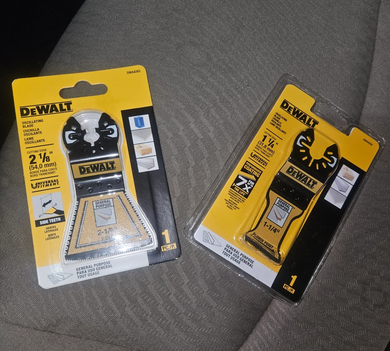 Selling two new DeWalt oscillating blades, still in their original packaging! One is a 2-1/8" general purpose blade and the other is a 1-1/4" plunge point blade, both designed for general use