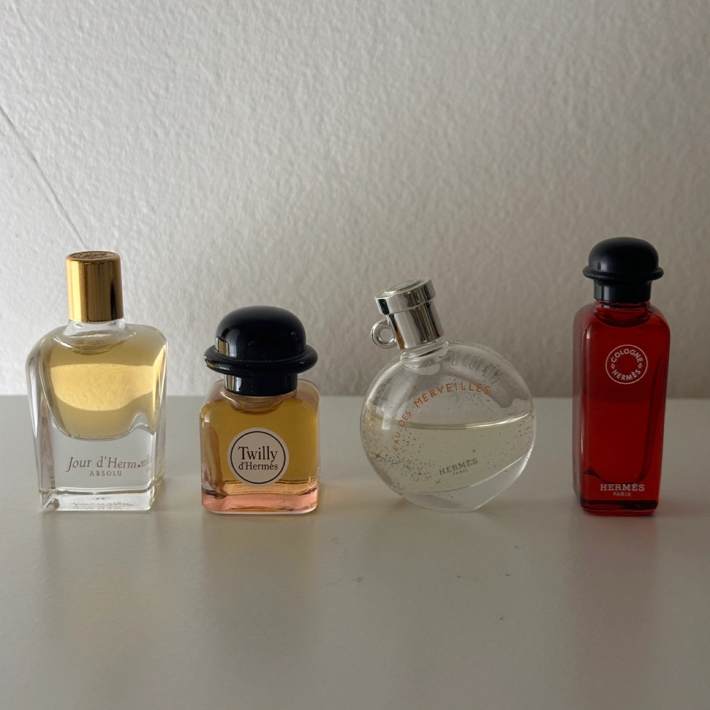 Set of 4 authentic Hermès perfumes – each one lightly sprayed just once to test the scent.