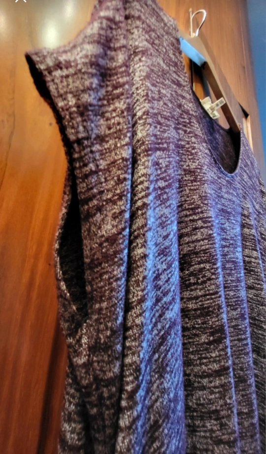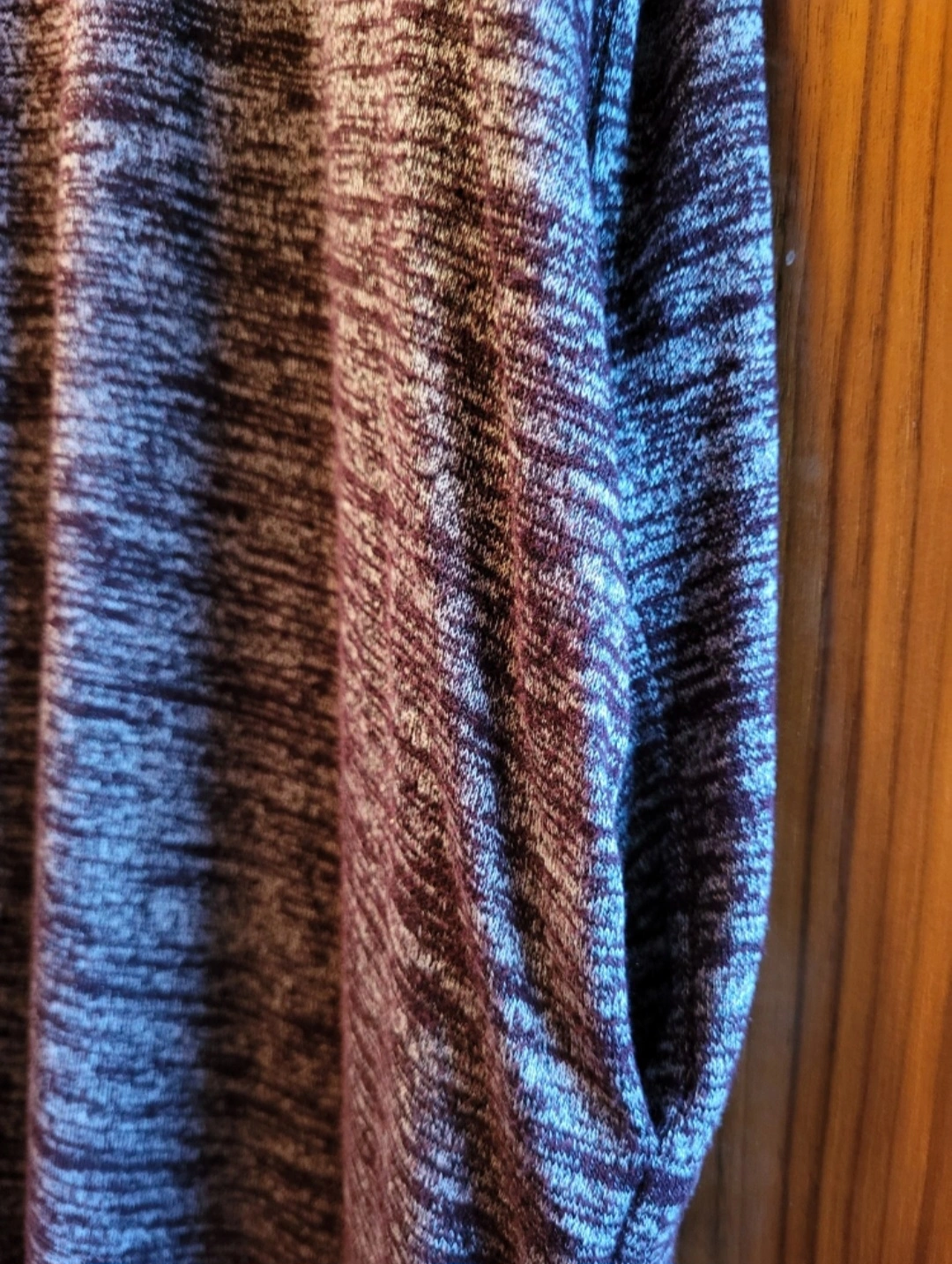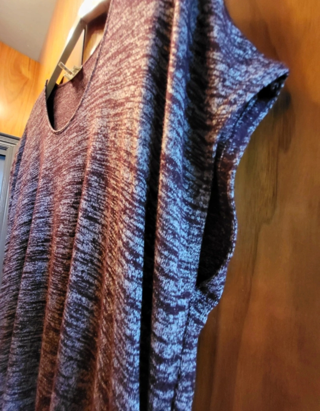 This is an intentionally loose fitting tshirt dress above the knee with a scoop neck, short cap sleeves, and subtle pockets on both sides.