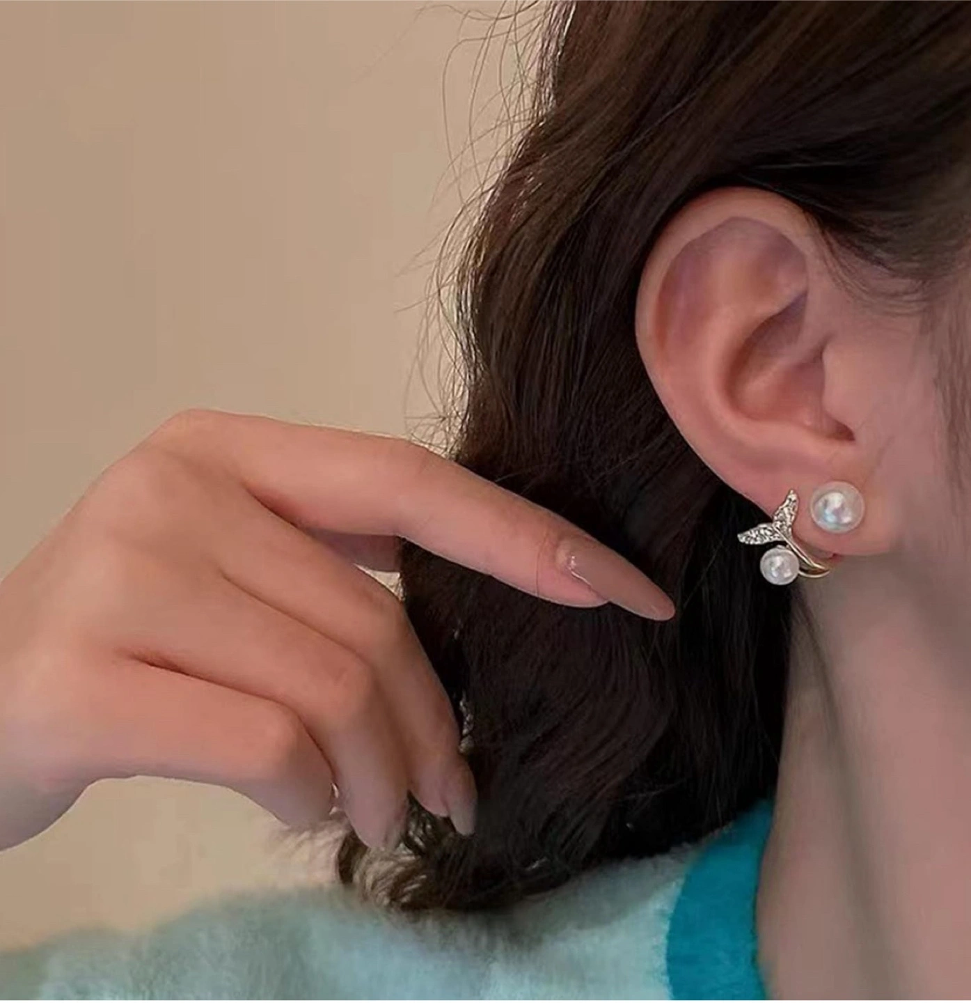 These are some lovely pearl and crystal stud earrings! They feature a unique design with a faux pearl and crystal detailing. Perfect for adding a touch of elegance to any outfit