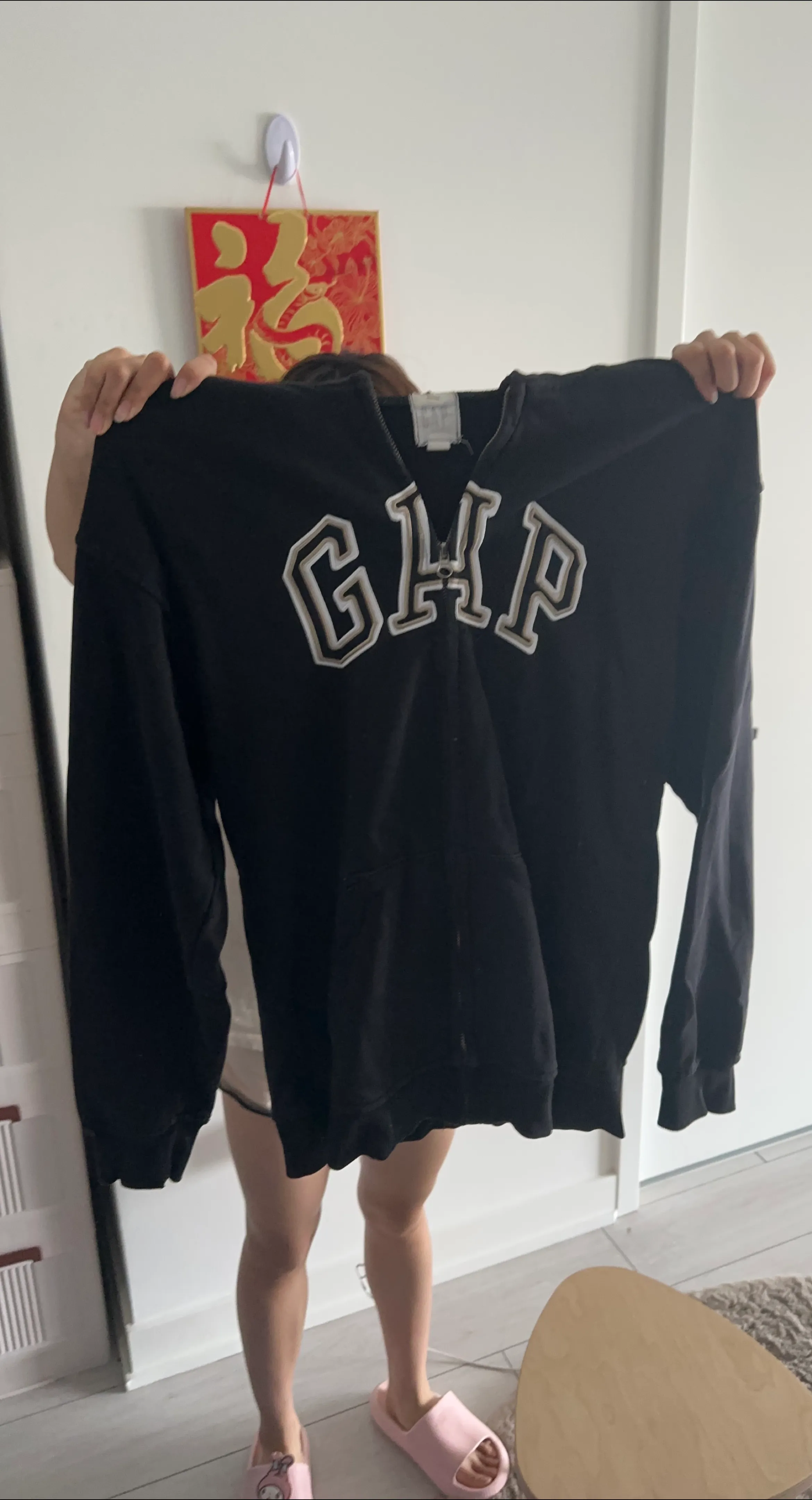 Selling a black zip-up hoodie from Gap! It's in great condition and perfect for layering or just lounging around