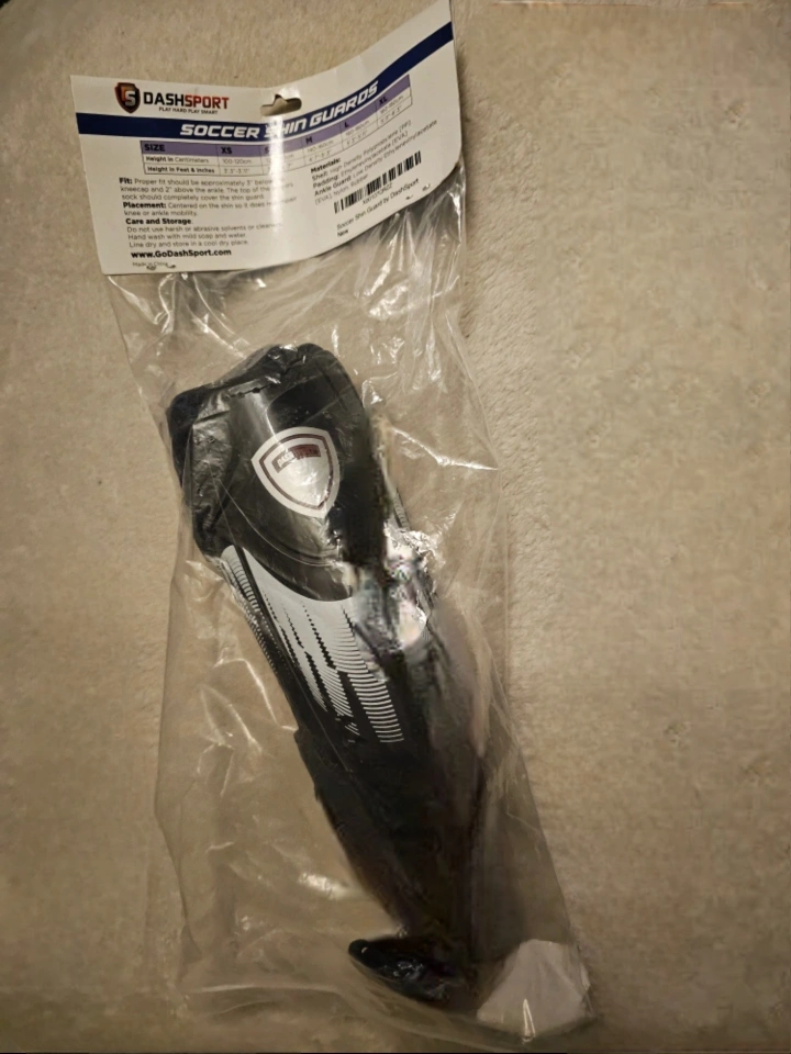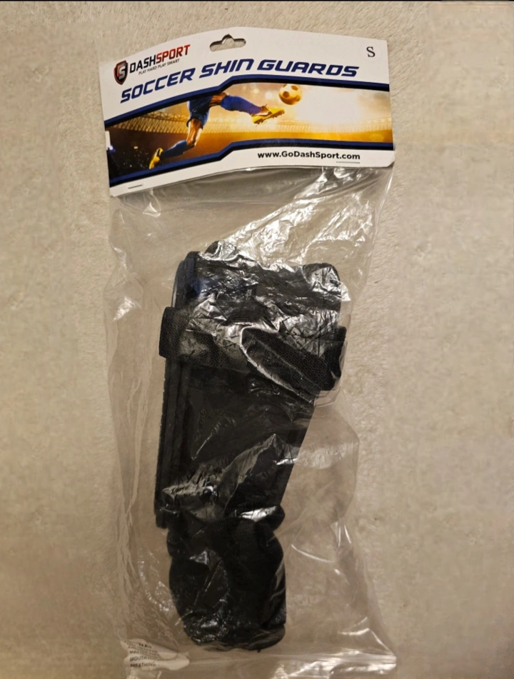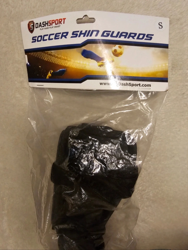 Selling a new pair of DashSport soccer shin guards, still in the original packaging! They are a size small, kids.