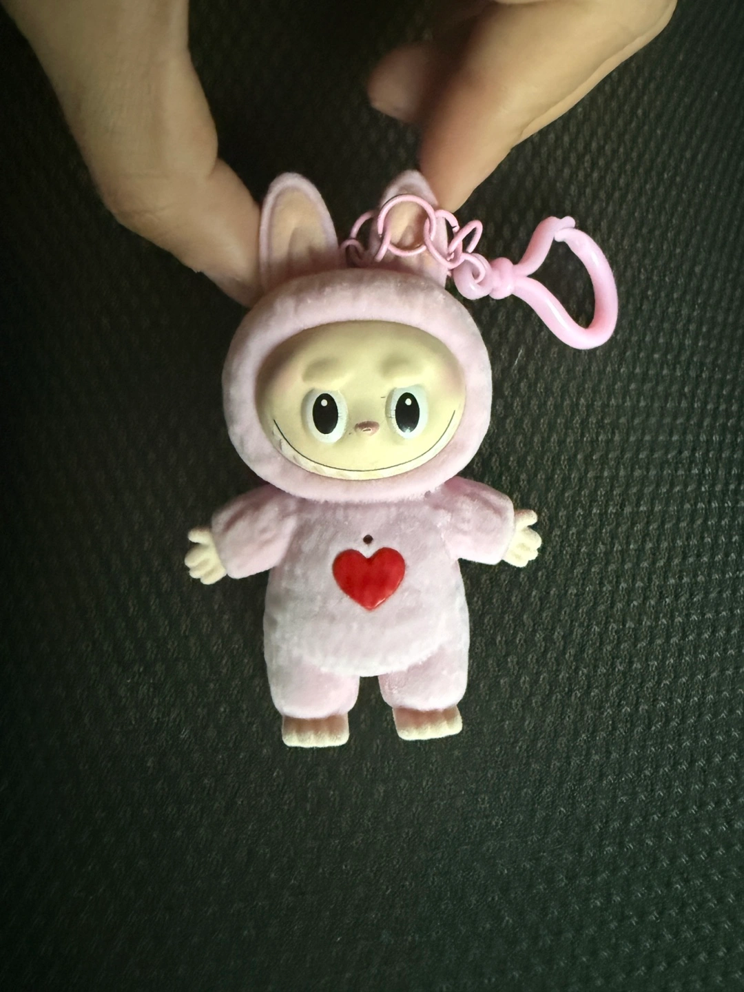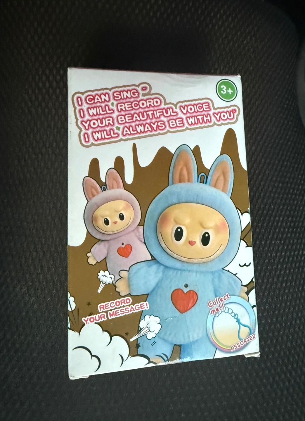 This is a cute pink bunny plush toy that can also be used as a keychain! It's in new condition and comes with the original box. It sings and records your voice. It is recommended for ages 3+.