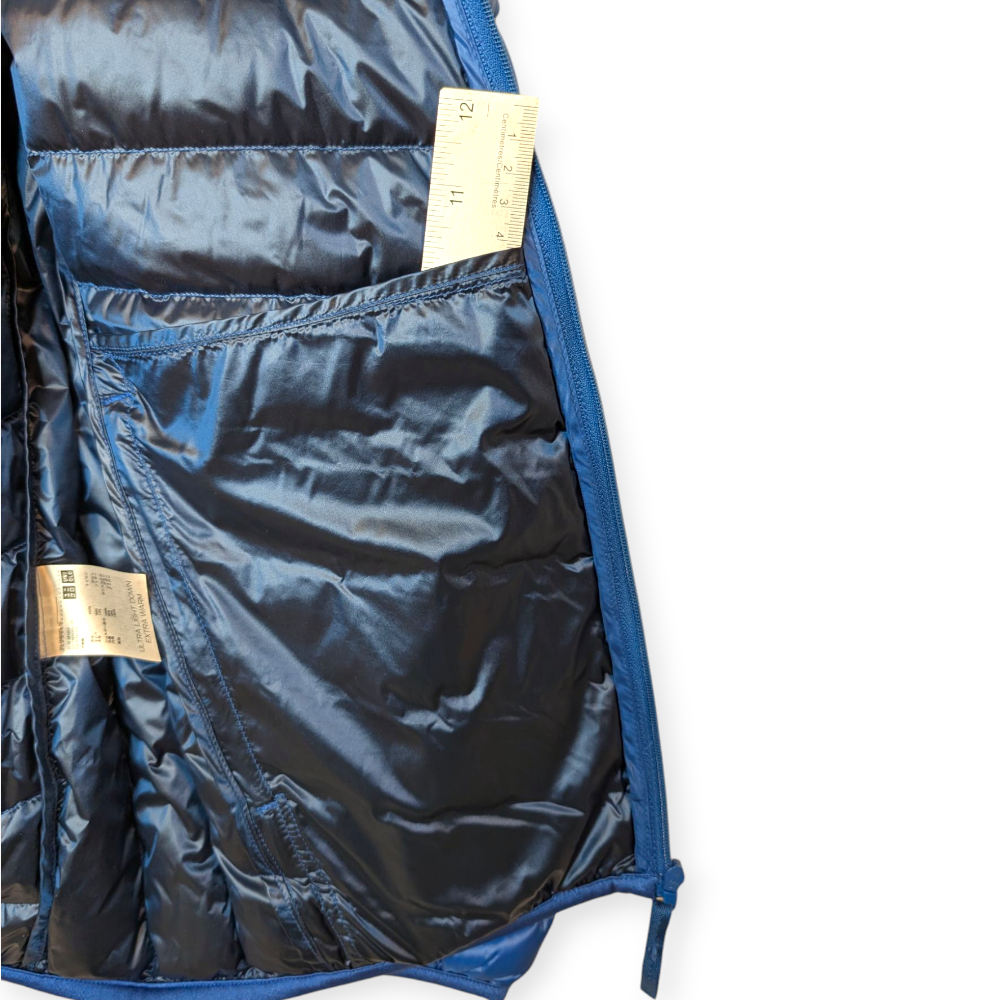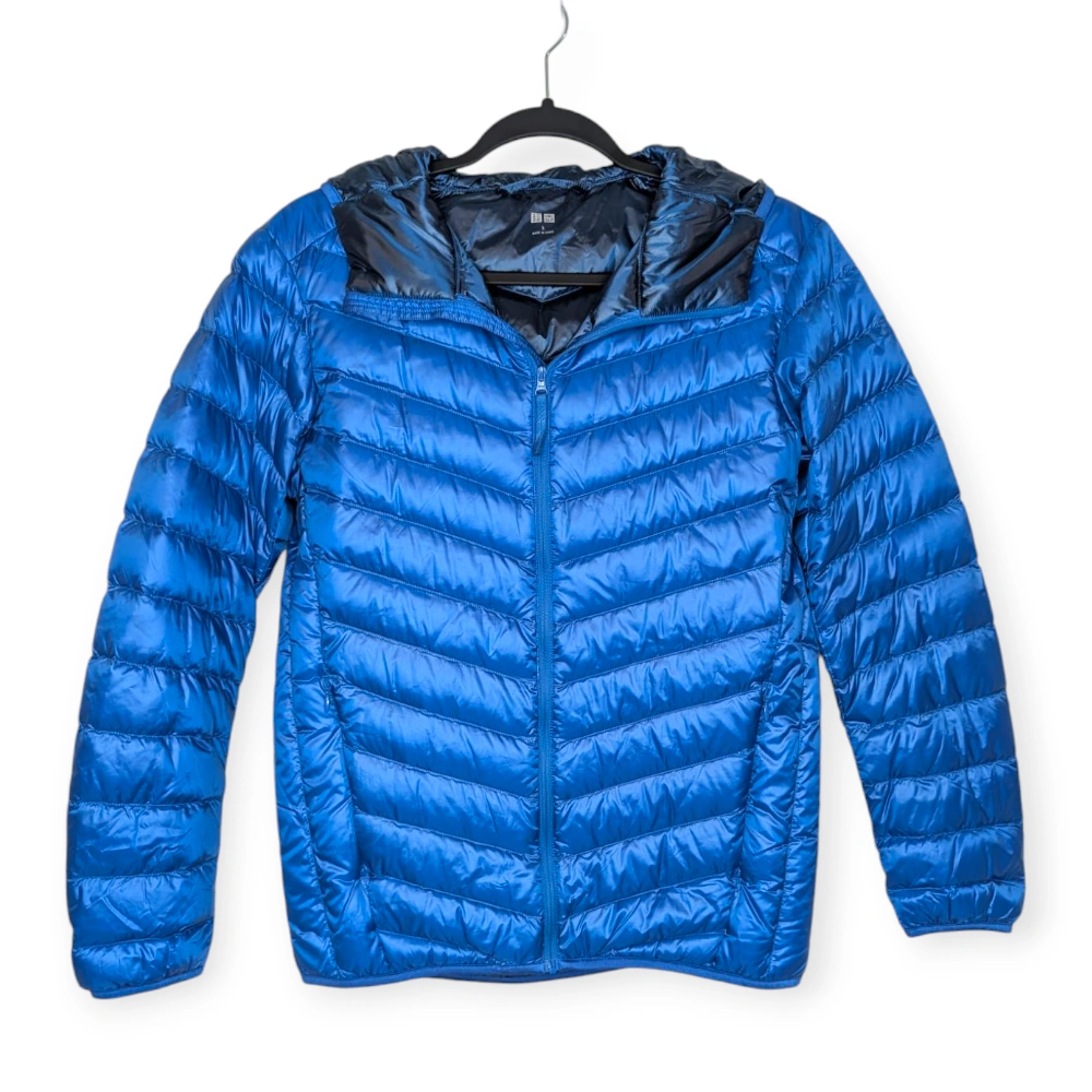 Giving away a Uniqlo Ultra Light Down hooded jacket in blue. It's in great condition and perfect for layering or wearing on its own during milder weather (fall/spring) It's lightweight and packs down easily, making it great for travel or everyday use.