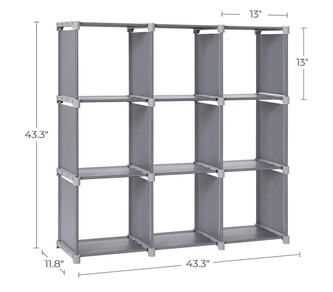 9 cube storage shelf, open closet organizer rack cabinet gray. It includes 2 foldable storage bins color lavender