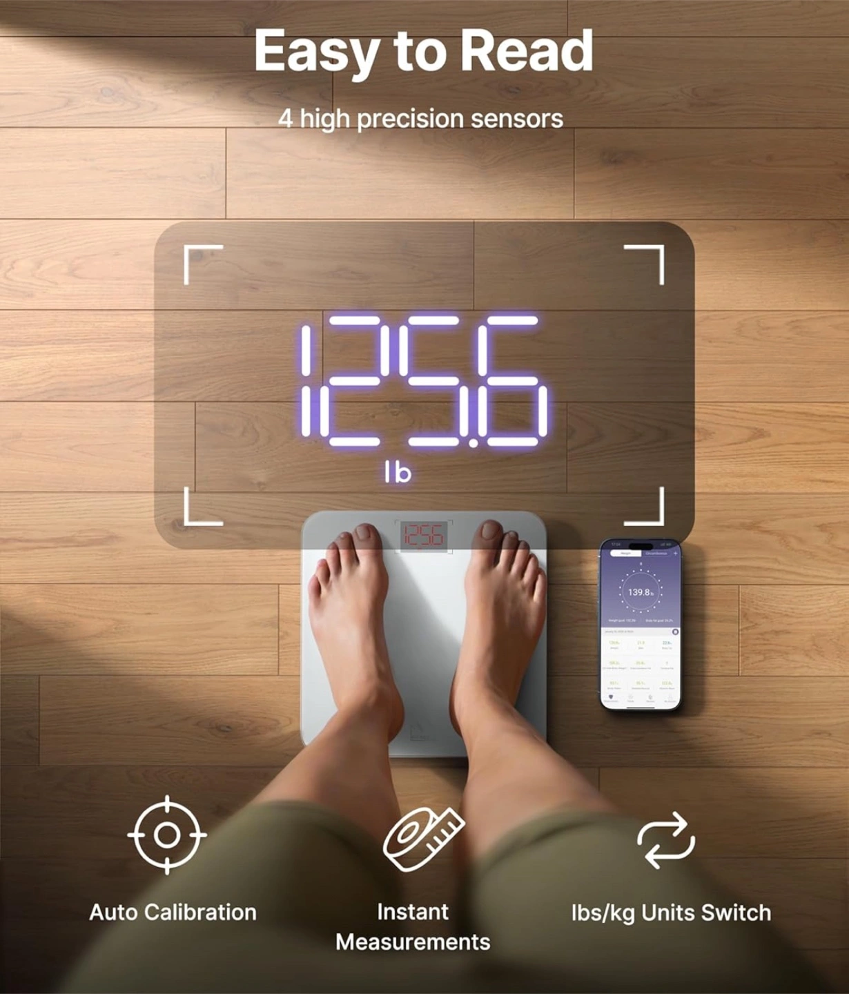 Keep track of your health with this Fitindex smart scale! It measures 13 essential body compositions, including weight, body fat, and muscle mass. The scale has 4 high precision sensors for accurate measurements and can seamlessly sync to fitness apps. It has a max weight capacity of 400lbs/180kg
