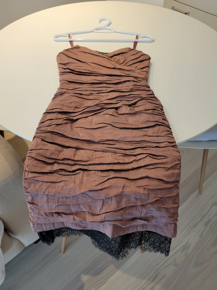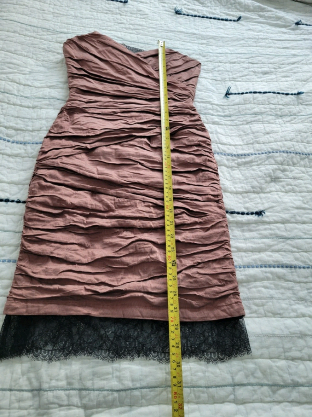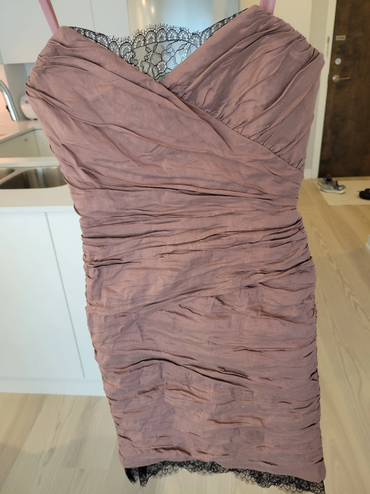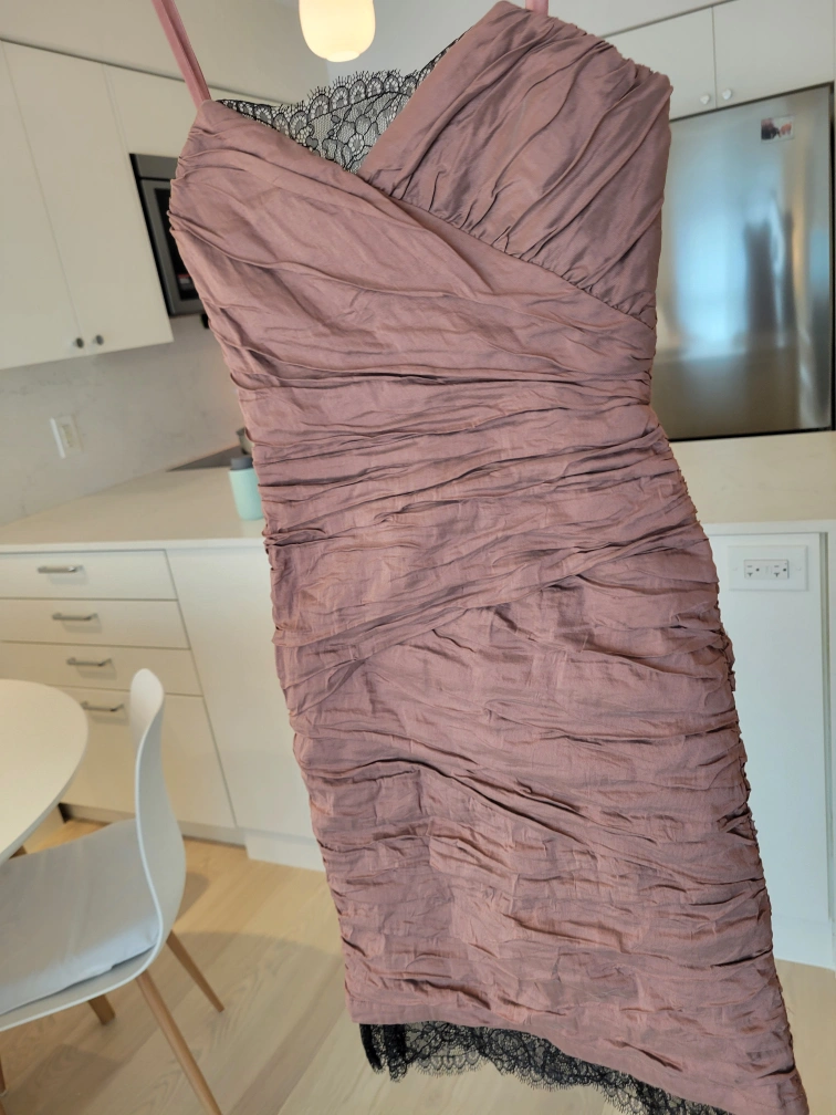 Elegant BCBGMAXAZRIA dress in size 2. High quality fabric, beautiful mauve colour with a lace trim. Perfect for evening out or a special occasion.