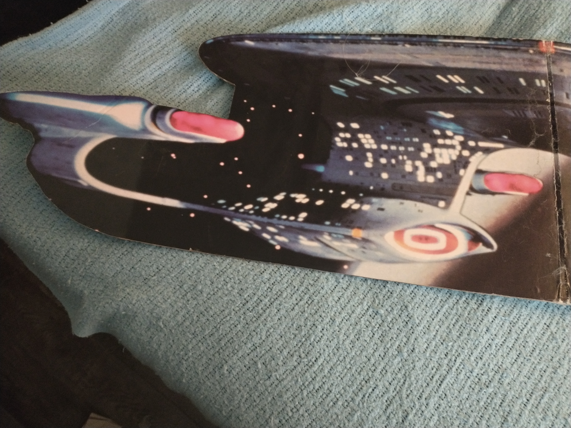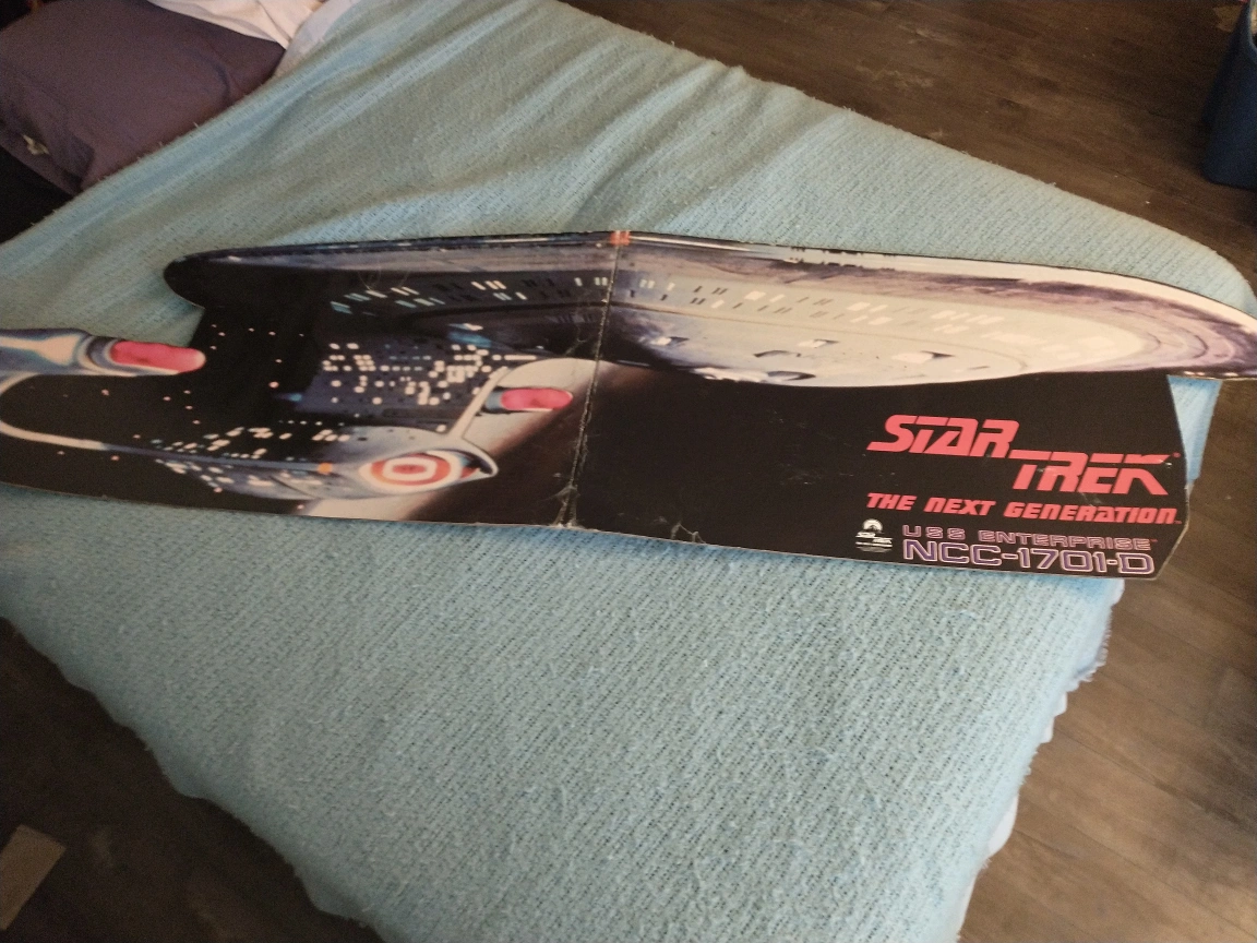 VINTAGE! STAR TREK: TNG ENTERPRISE-D SHIP CUT OUT. THIS WAS USED AS MOVIE ADVERTISING IN A MOVIE THEATER HERE IN VANCOUVER, EITHER FOR GENERATIONS OR FIRST CONTACT. IS MADE FROM CARDBOARD, FOLDS IN HALF FOR EASY STORAGE. I COULD NOT FIND ANY OTHER LISTING FOR THIS ONLINE, JUST CREW CUTOUTS GOING FOR $50 TO $250.