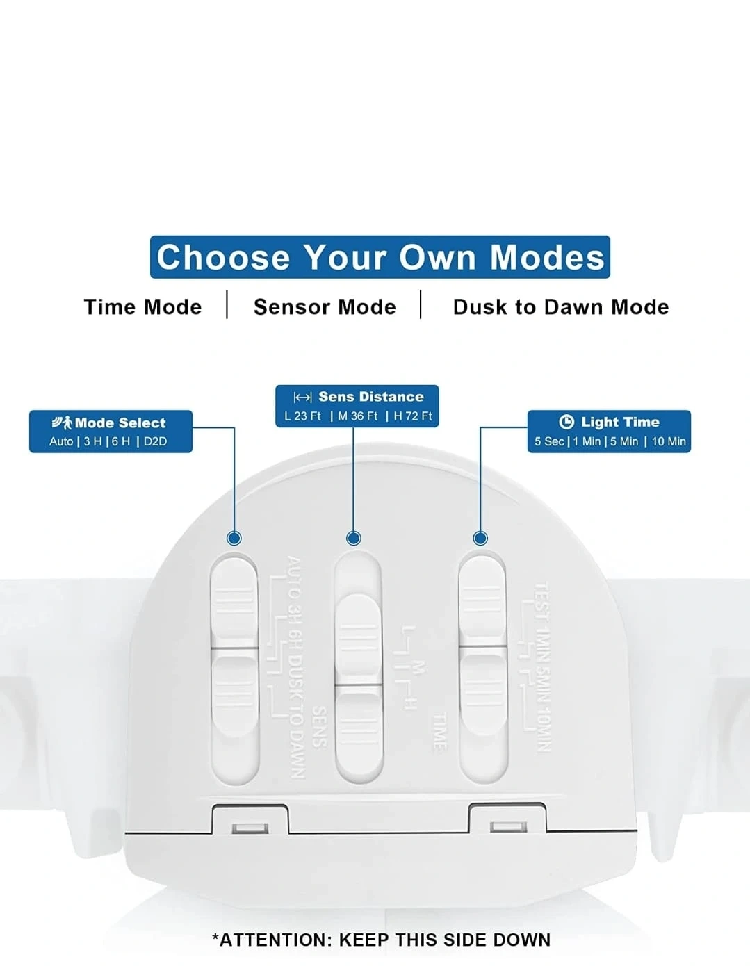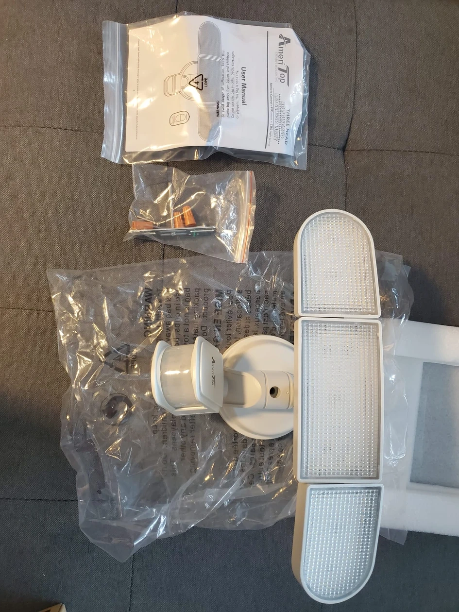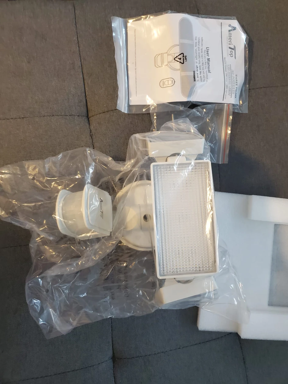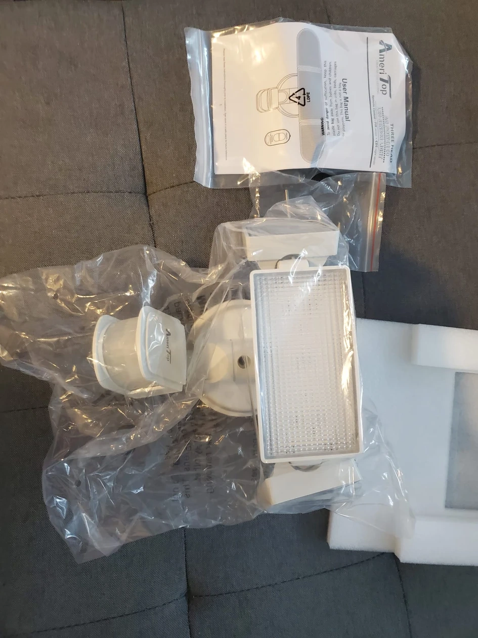 390Motion Sensor AUTO Mode - Our lights have daylight and motion sensor, the motion is detected with 180 degrees swiveling angle, sensing light levels and motion up to max 72 feet. Auto ON for pre-determined time(1/5/10MIN) when people or other living objects are detected within the sensing area, and Auto OFF after no further motion is detected. Built-in PIR motion sensor of our outdoor lights, it has a long-range of distance and a wide-angle for motion detection. Photocell Light Sensor Mode - Dusk to Dawn Mode, at dusk, the light will turn on at 50% brightness as an accent light. When motion is detected the light illuminates at 100% brightness 3H/6H Mode, at dusk, the light will turn on at 50% brightness as an accent light. When motion is detected the light illuminates at 100% brightness. The light will operate like this for 3/6 hours. After 3/6 hours the light becomes just a motion light. Ultra Bright & Energy Saving - ETL-Certification guarantees premium quality and lighting performance. The AmeriTop motion sensor security light with the three heads design, output 35W, 3500 Lumens, 6000K high brightness output, and good heat dissipation. Equivalent to 200W halogen light, also save your electricity bill by more than 80%. Lighting direction is adjustable with the three flexible light heads, save your trouble to install two extra light. Security Outdoor Lights - Motion Sensor Mode & Dusk to Dawn Sensor 2 in 1. The robust die-cast aluminum housing and impact-resistant PC lens ensure this 3 head security light fixture can stand up to the elements and bad weather. IP65 waterproof rating ensures that your 3 head security light fixture won't give in in rain, sleet, or snow weather. It's specifically designed to withstand extreme weather conditions, all-weather resistant and provide additional safety and security for your home. Larger Lighting Area - With the innovative wide-angle and three heads design, Adjustable heads can move upwards, downwards and horizontally. The triple head design gives you a much wider light casting range. Adjust light heads to the angles you see fit. Up to 180 Deg wide sensing angle and 60ft sensing distance, easy to adjust the light heads, lens hoods, and motion sensor to different angles as your requirement. This light can be easily installed by following a few simple wiring steps