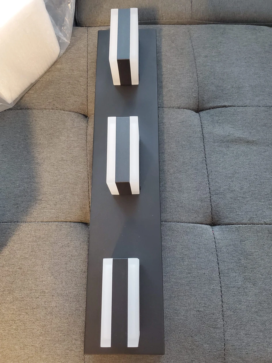 3901.SAFETY : CE / ROHS/ QCQ certificated. IP44 waterproof and dust proof capacity. 2.EASY TO INSTALL: No switch or cord on the light. JUST Connect to the reserved wire directly,Suitable CA junction box standard. 3.ENERGY SAVING: 24W LED Vanity Lights / White Light. Although only 24W, but he offers brightness more than ordinary 120W bulbs 4.HIGH QUALITY MATERIAL: Matt Black Metal with White Solid Acrylic Shade, Modern and shin your room. Thick Acrylic Shade, soften lighting and care of eyes health. 5.NOBLE DESIGN: Acrylic brings more brilliance to your life, simple and luxurious design, highlights your taste