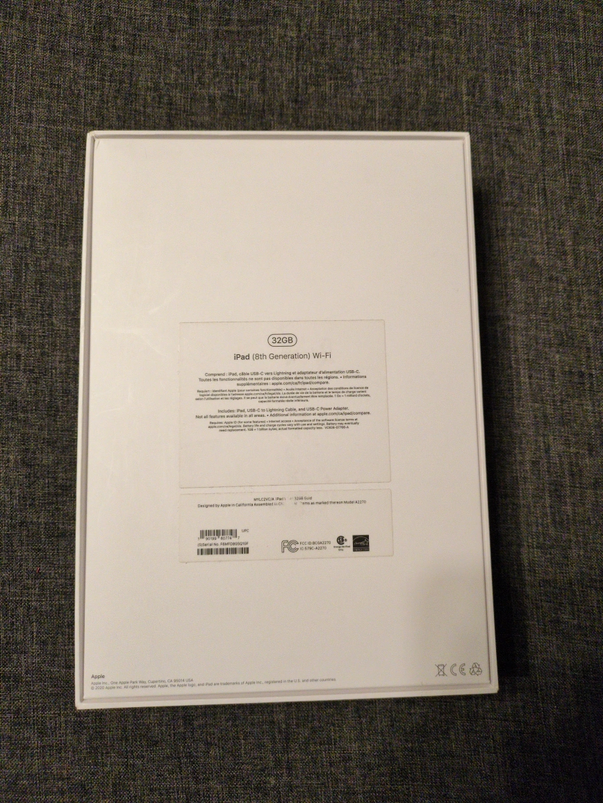 Selling the original box for an Apple iPad 8th Generation, Wi-Fi, 32GB model. Perfect if you need a replacement box or are a collector! Box only, no iPad included