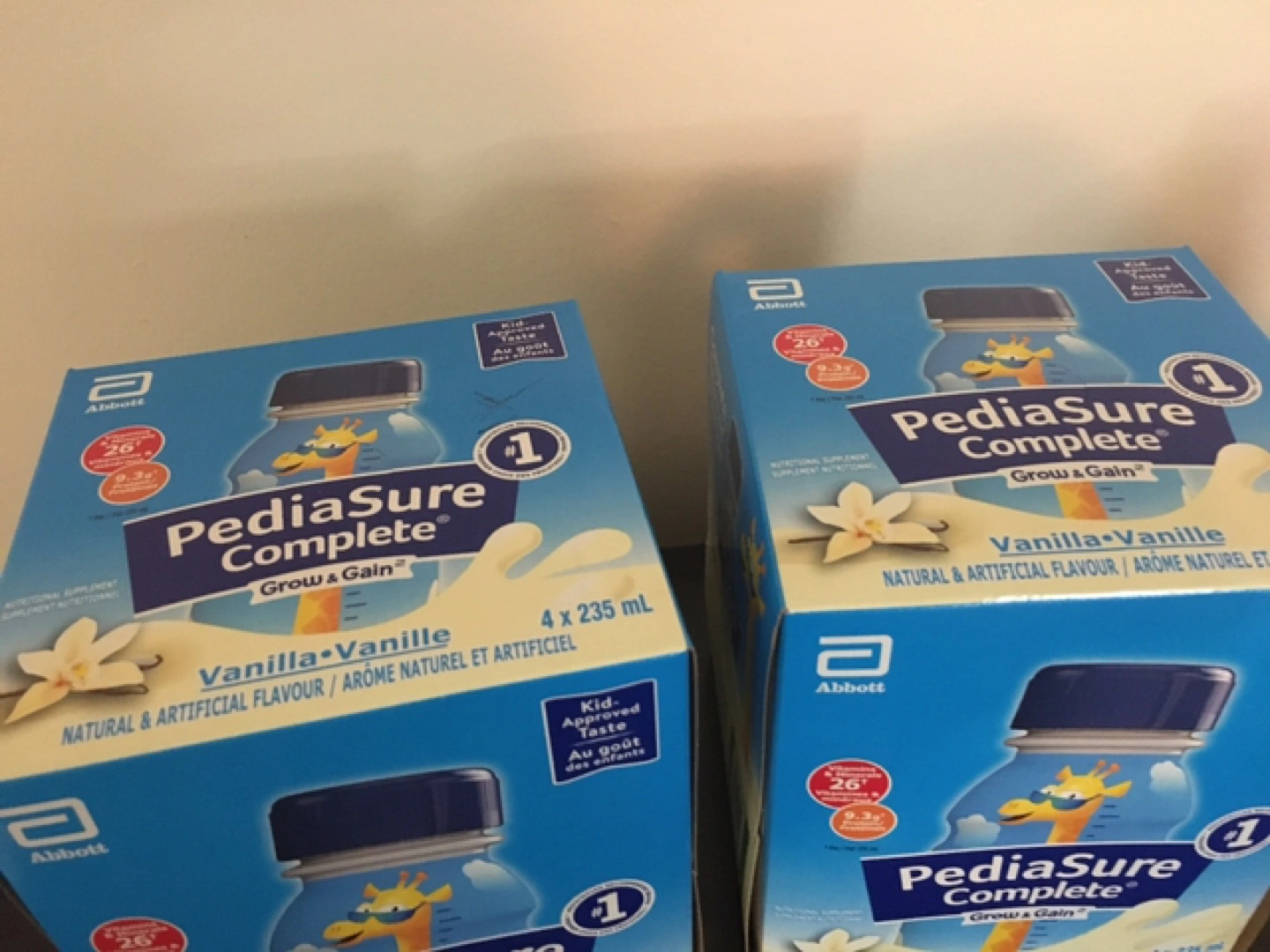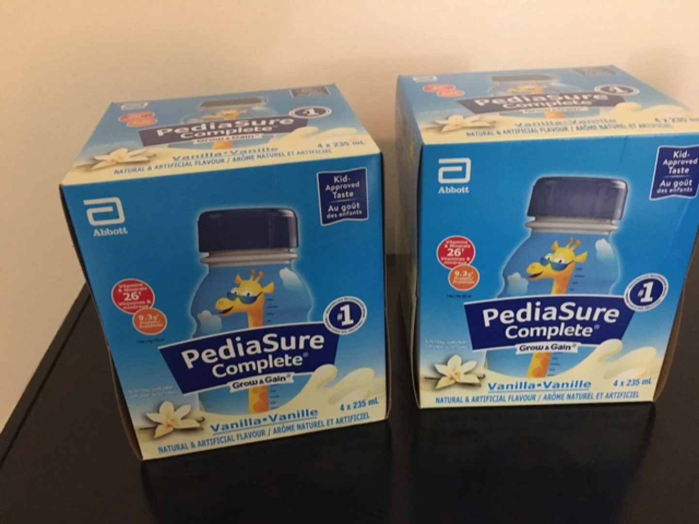 Selling PediaSure Complete Grow & Gain in Vanilla flavour! Each package contains 4 bottles, each 235mL. Perfect for your little one's nutritional needs