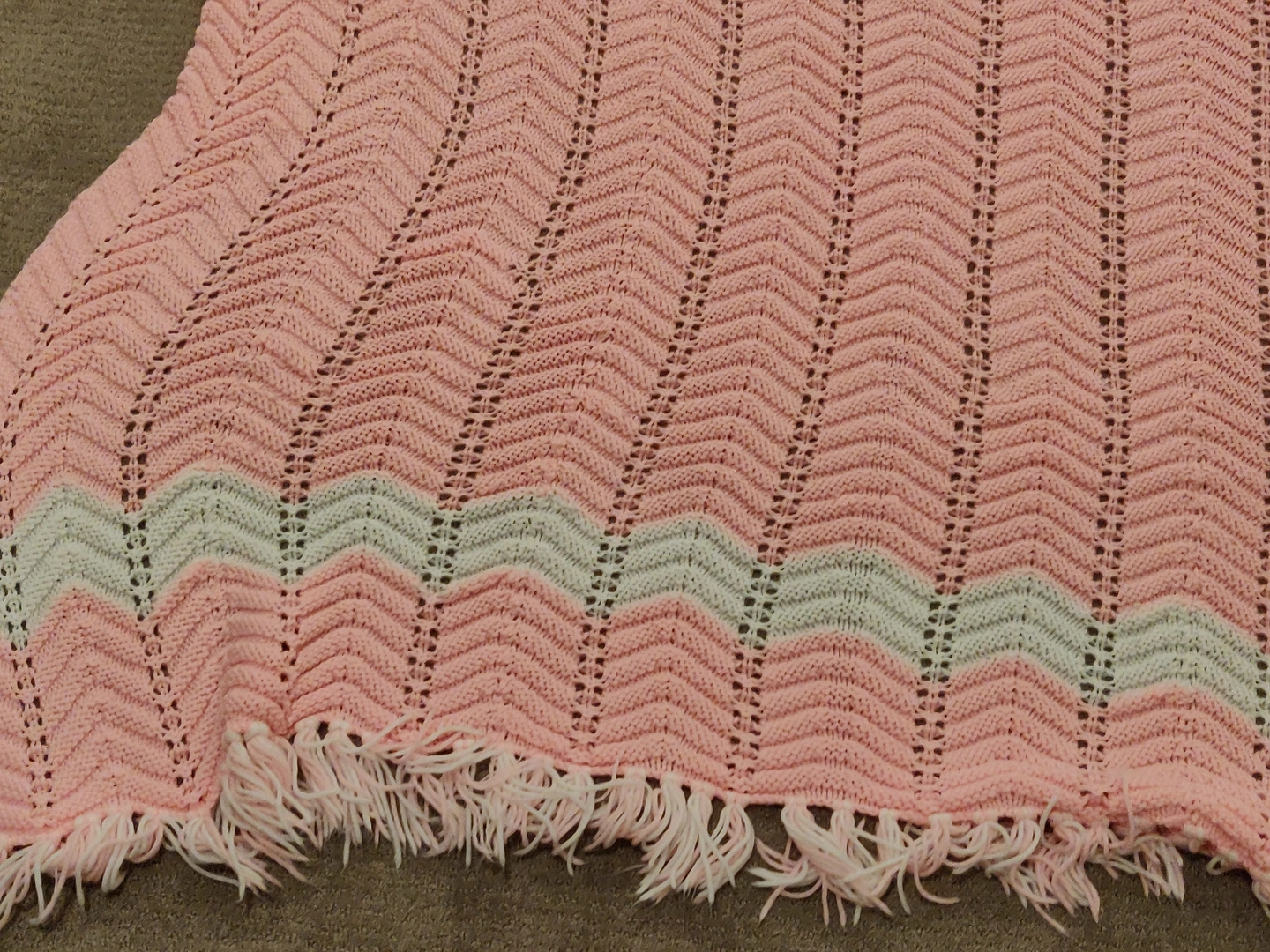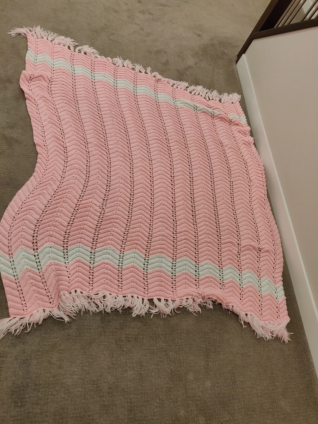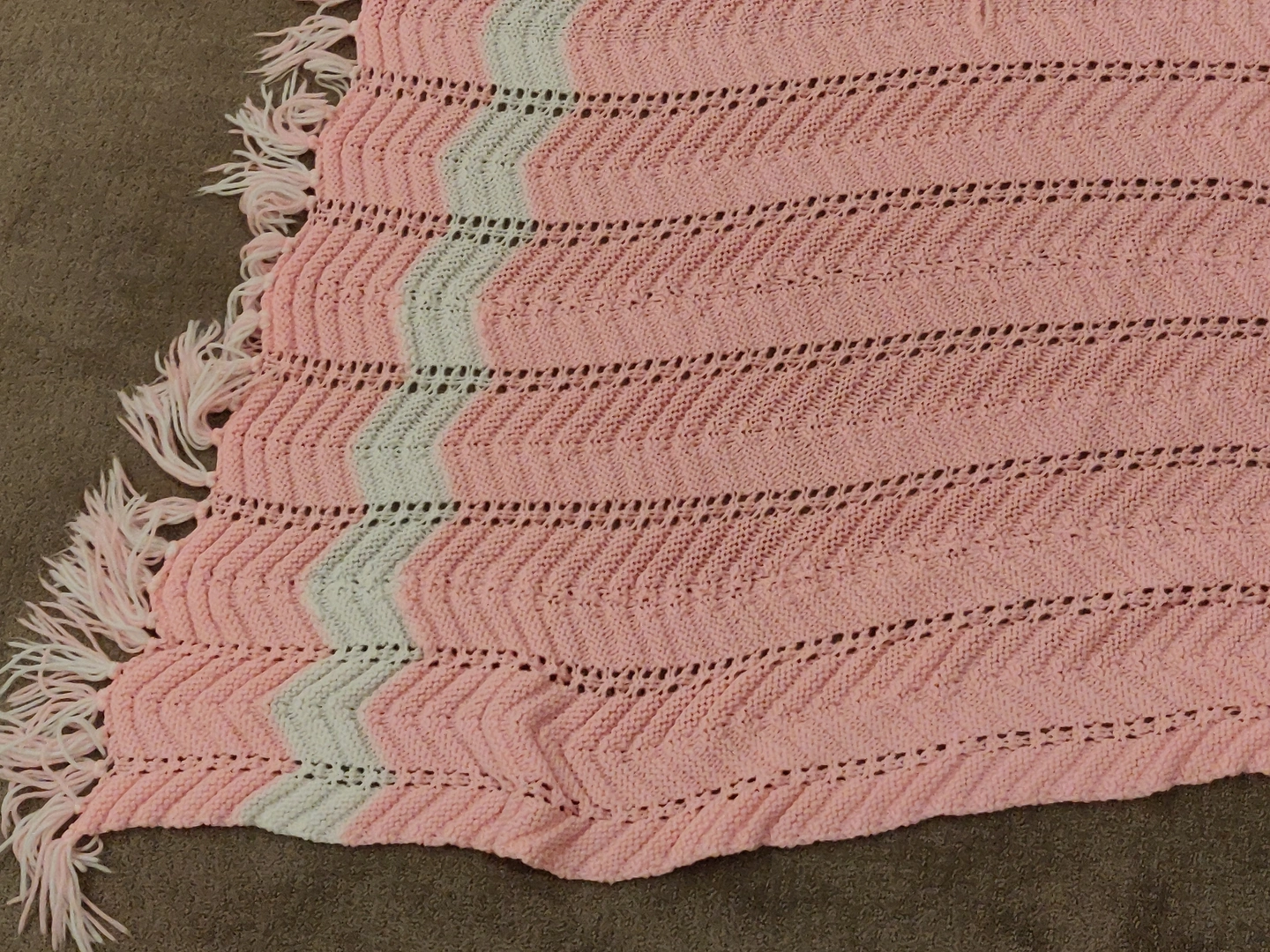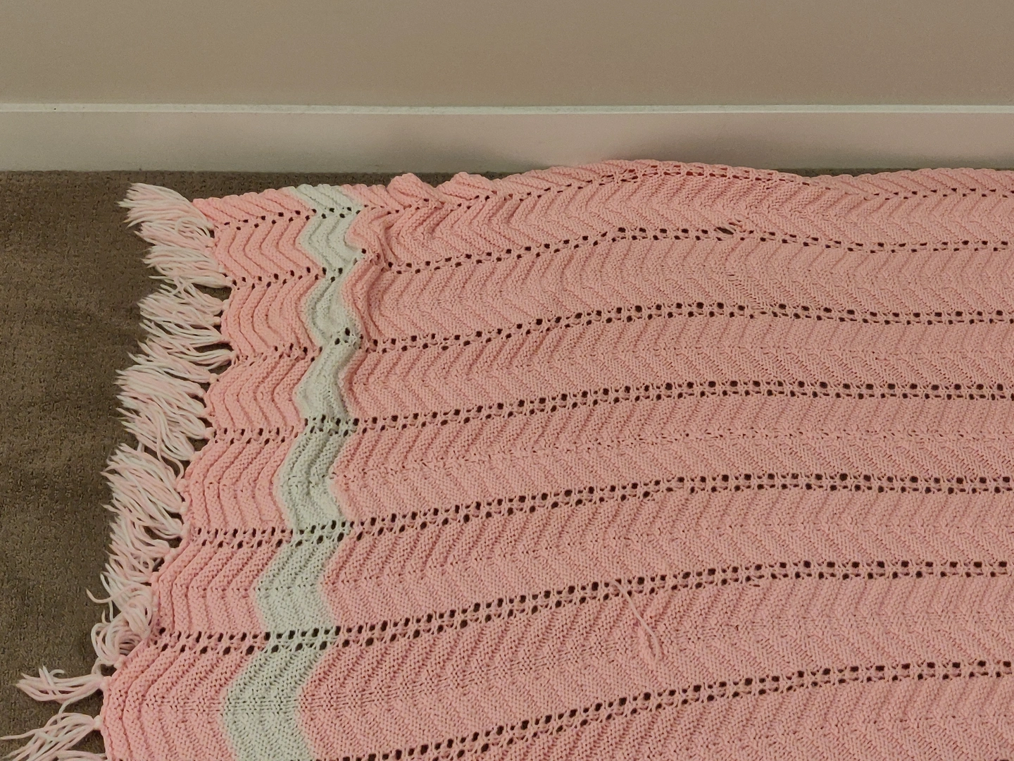Handmade Hand Knit Pink Blanket (52" x 75")