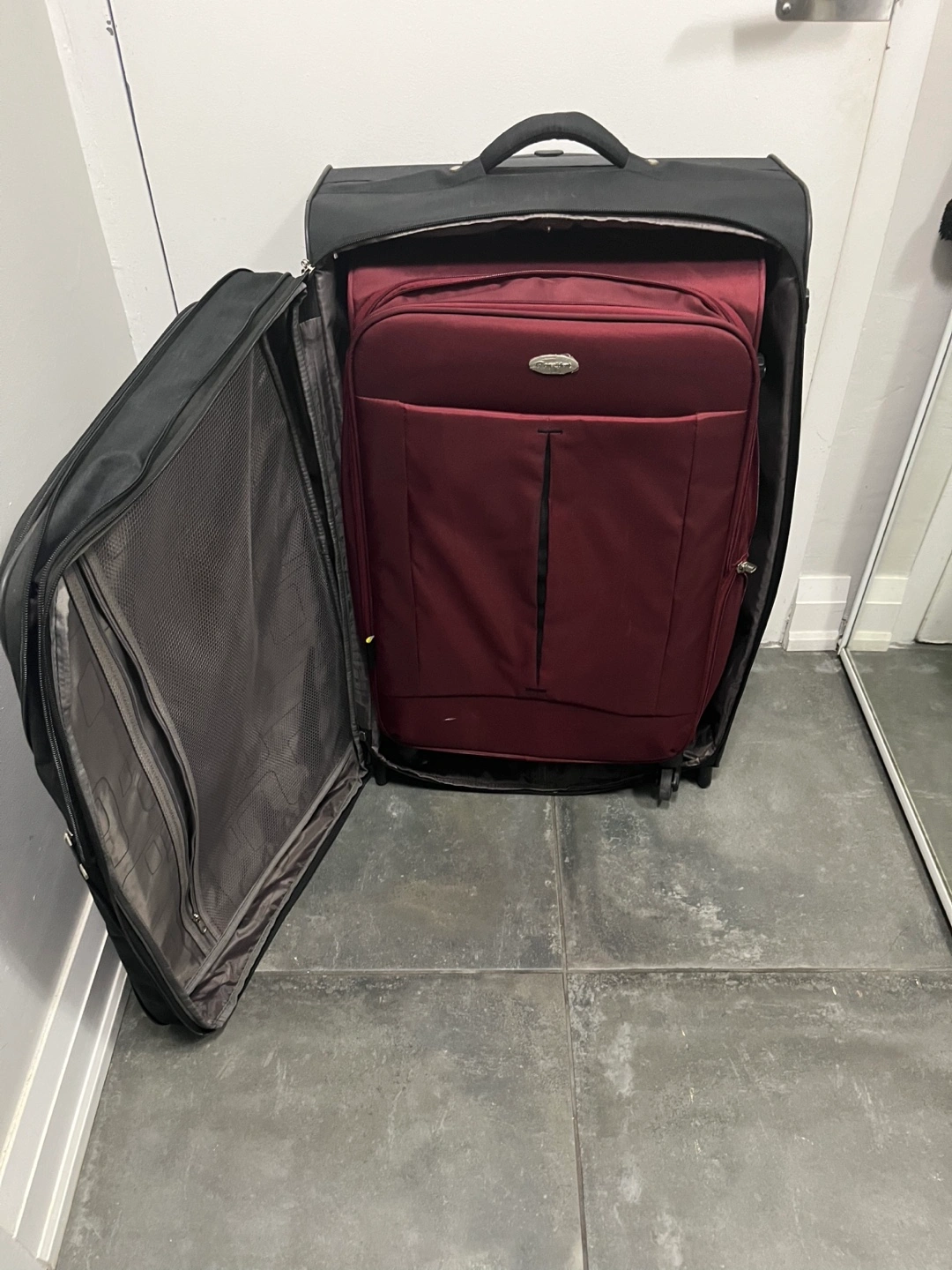 Selling a set of two gently used suitcases. One is an American Tourister and the other is a President brand luggage piece. Perfect for your next trip! One is XL size and the purple one is large. 100 for both