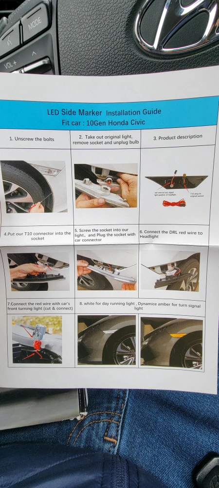 I'm selling a brand new Genmpro LED Turn Signal Light with a smoked lens. It comes in its original box, ready for installation. These LED side marker lights are designed to fit a 10th generation Honda Civic. Upgrade your car's lighting with these stylish and functional turn signals!