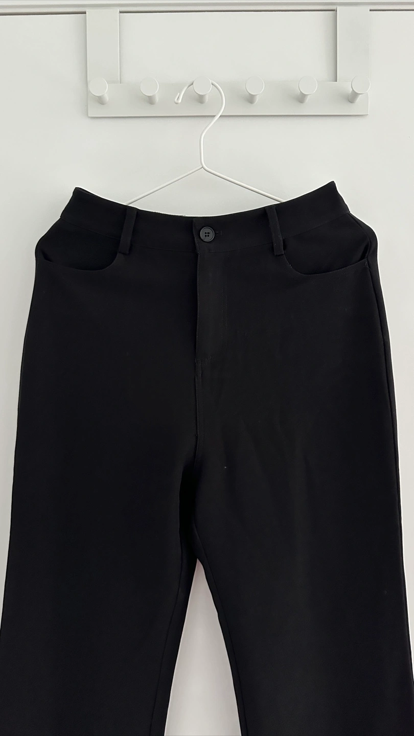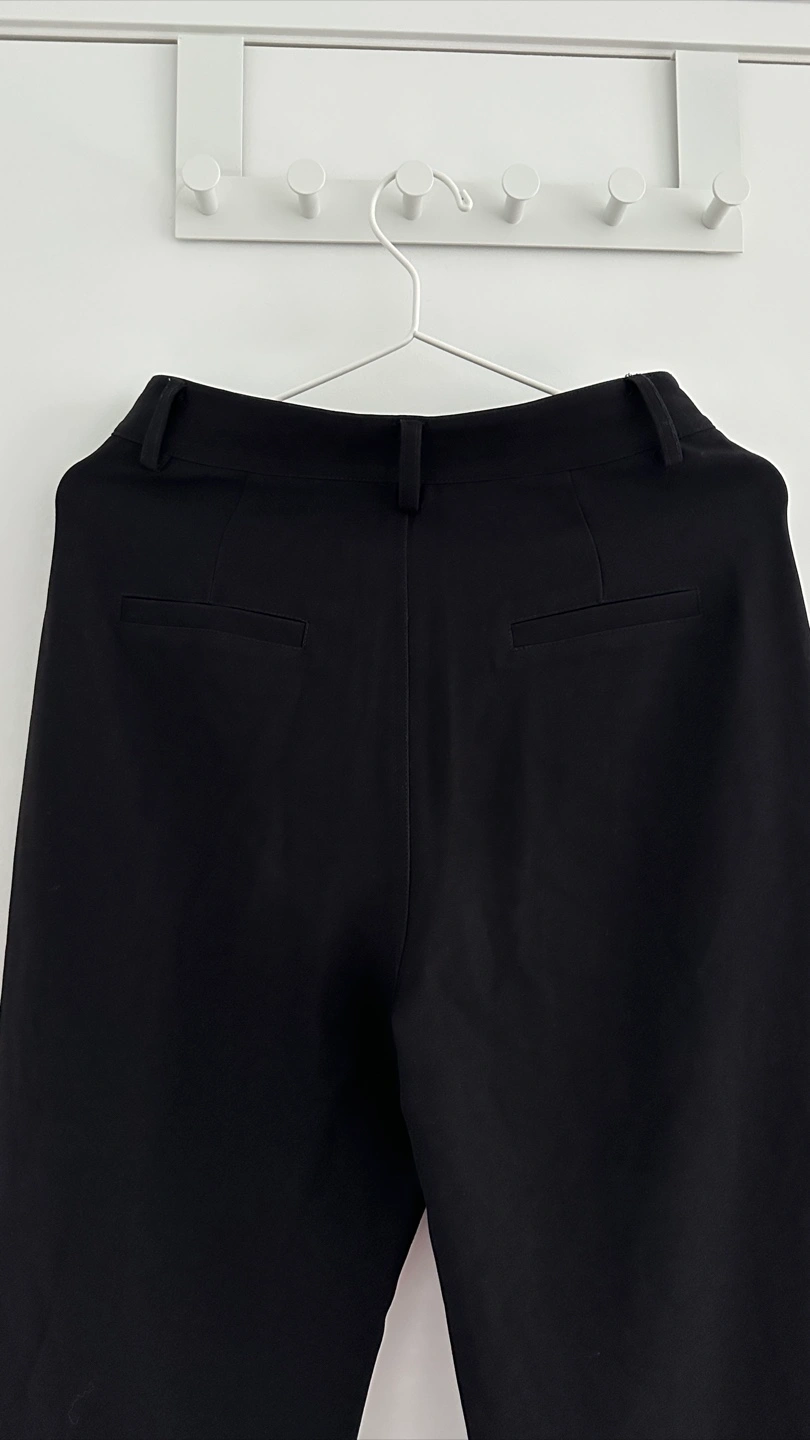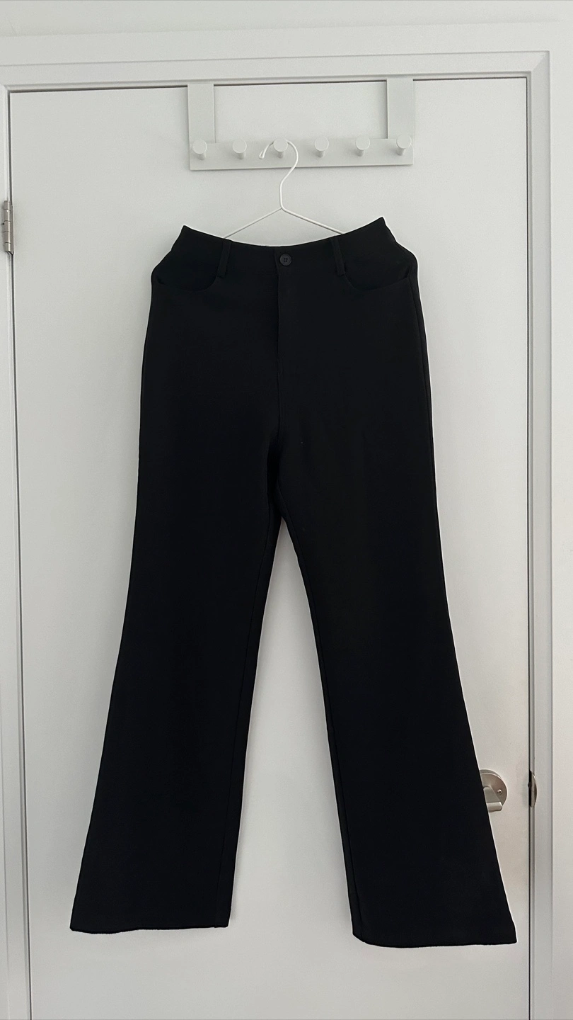 Selling a pair of black flare leg trousers. They're a stylish and versatile addition to any wardrobe! The classic black colour makes them easy to pair with any top or shoes Waist size: 66-68cm