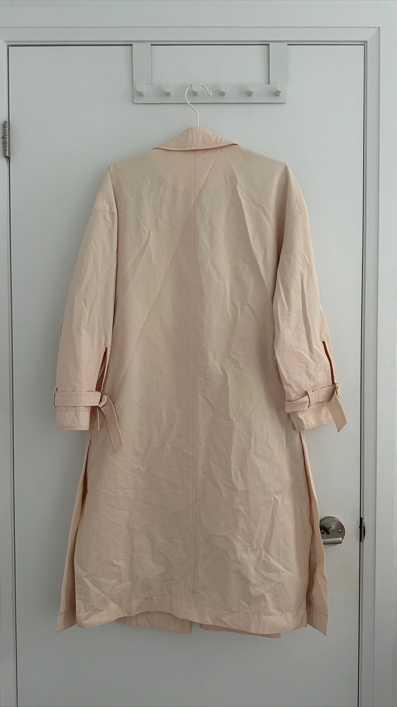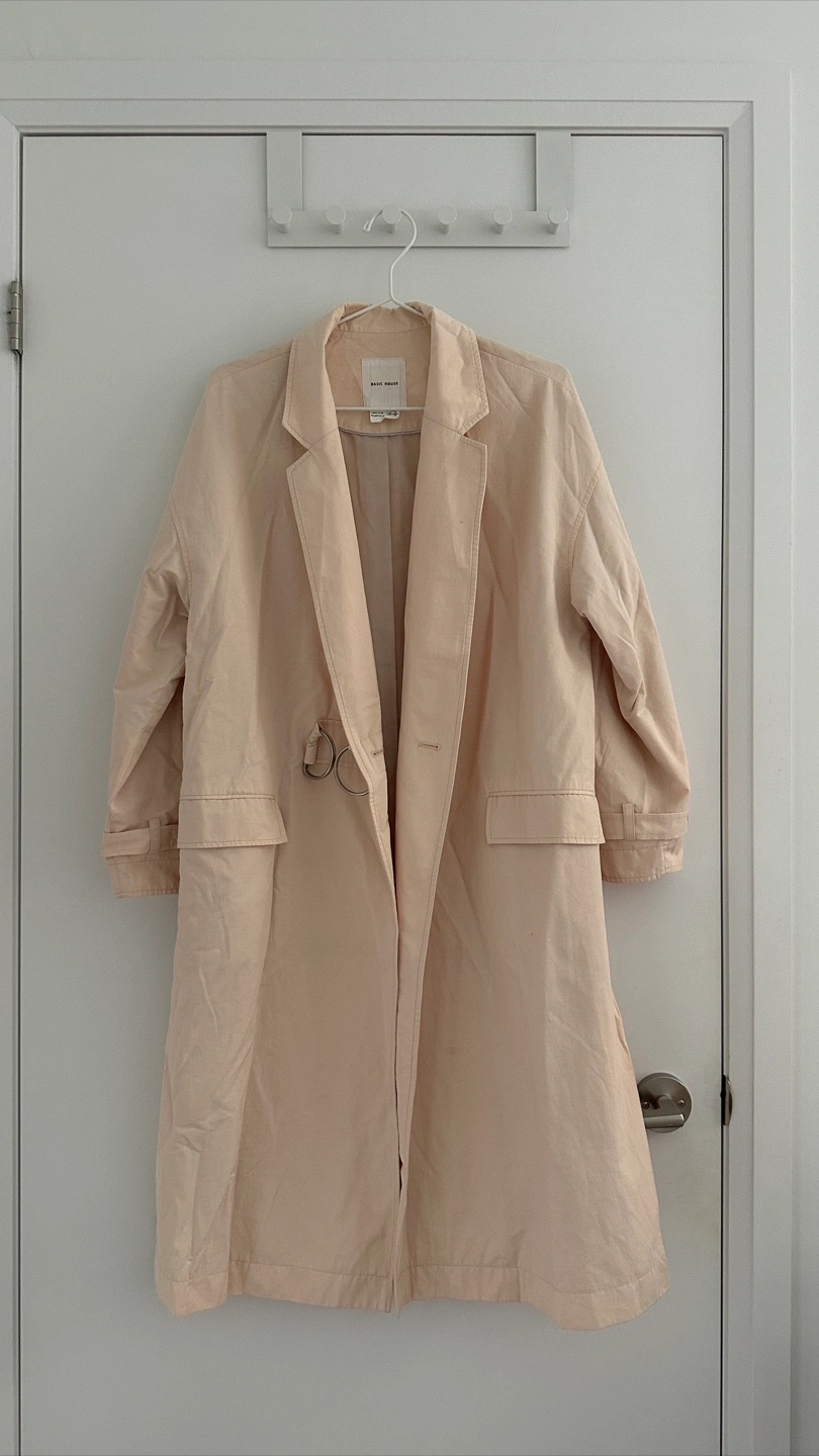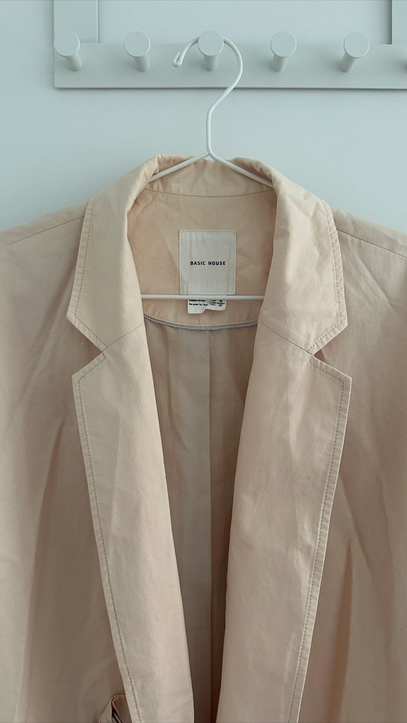 Selling a lovely beige trench coat from BASIC HOUSE. It's in great condition and a versatile piece for any wardrobe.