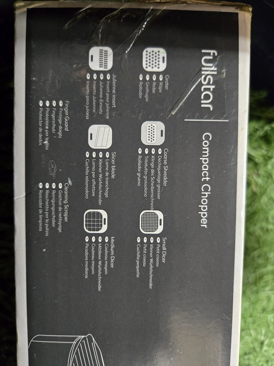 Simplify your food prep with the Fullstar Compact Chopper & Mandoline Slicer. Designed for speed and versatility, this 6-in-1 kitchen gadget chops, slices, dices, and grates with ease. Whether you're prepping potatoes, onions, cucumbers, or cheese, it’s a space-saving essential with interchangeable blades and a built-in catch container.