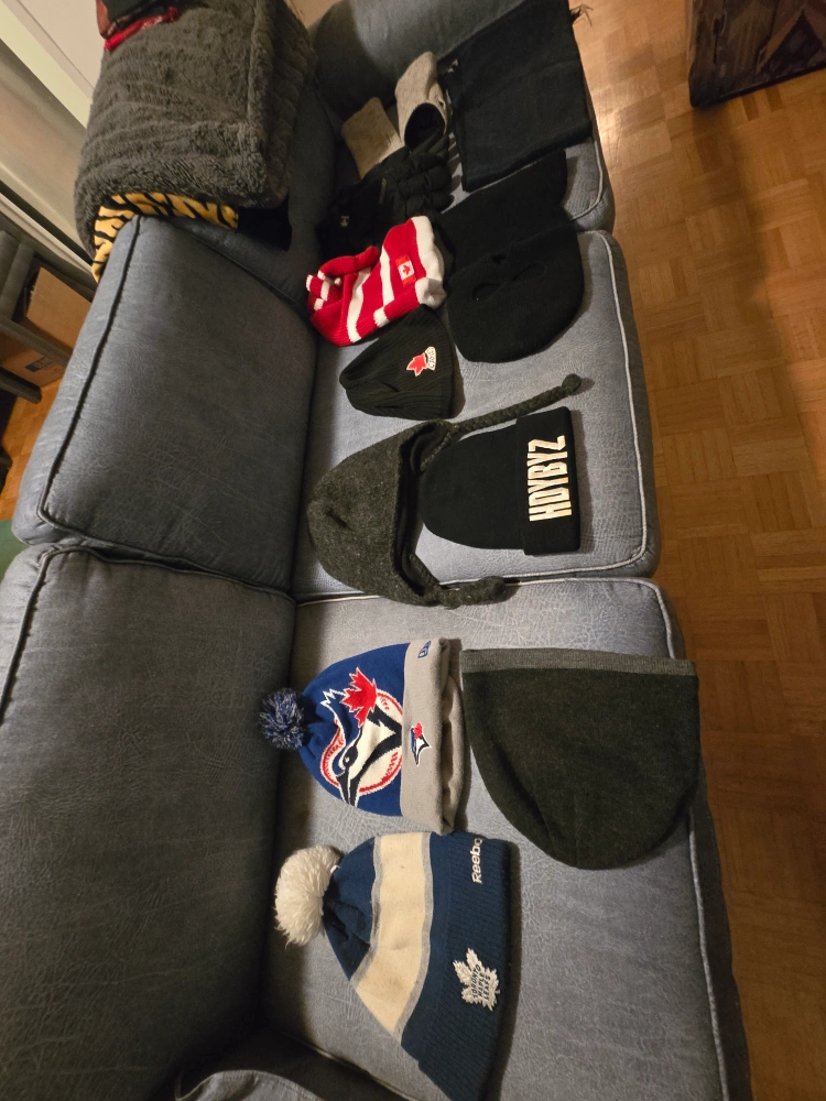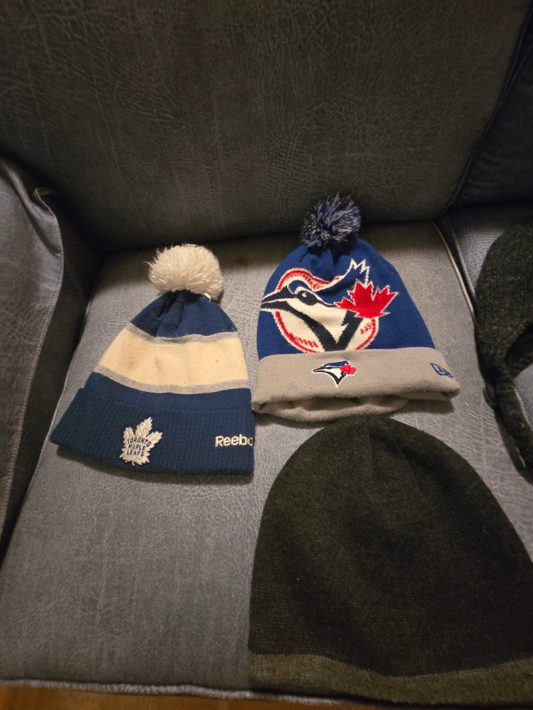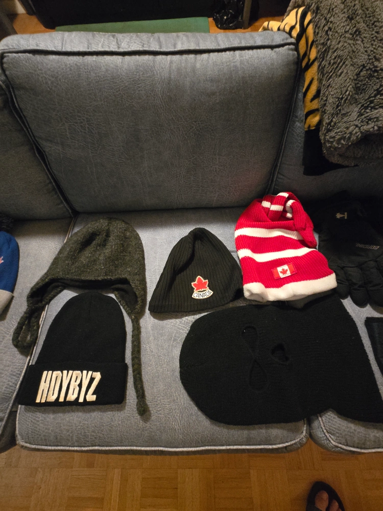 Selling a mixed lot of various toques, hats, face coverings, gloves, and scarves. Includes brands like Reebok and Toronto Blue Jays and Toronto Maple Leafs (from the Winter Classic in 2014 in Detroit). Perfect for keeping warm during the colder months!