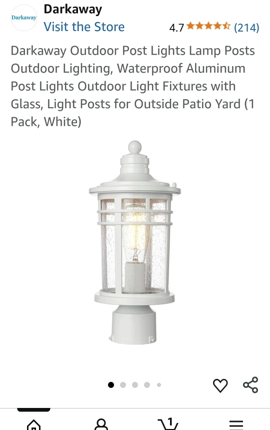 Selling a Darkaway outdoor post light. It's white and a medium size. Great for adding some light to your outdoor space!