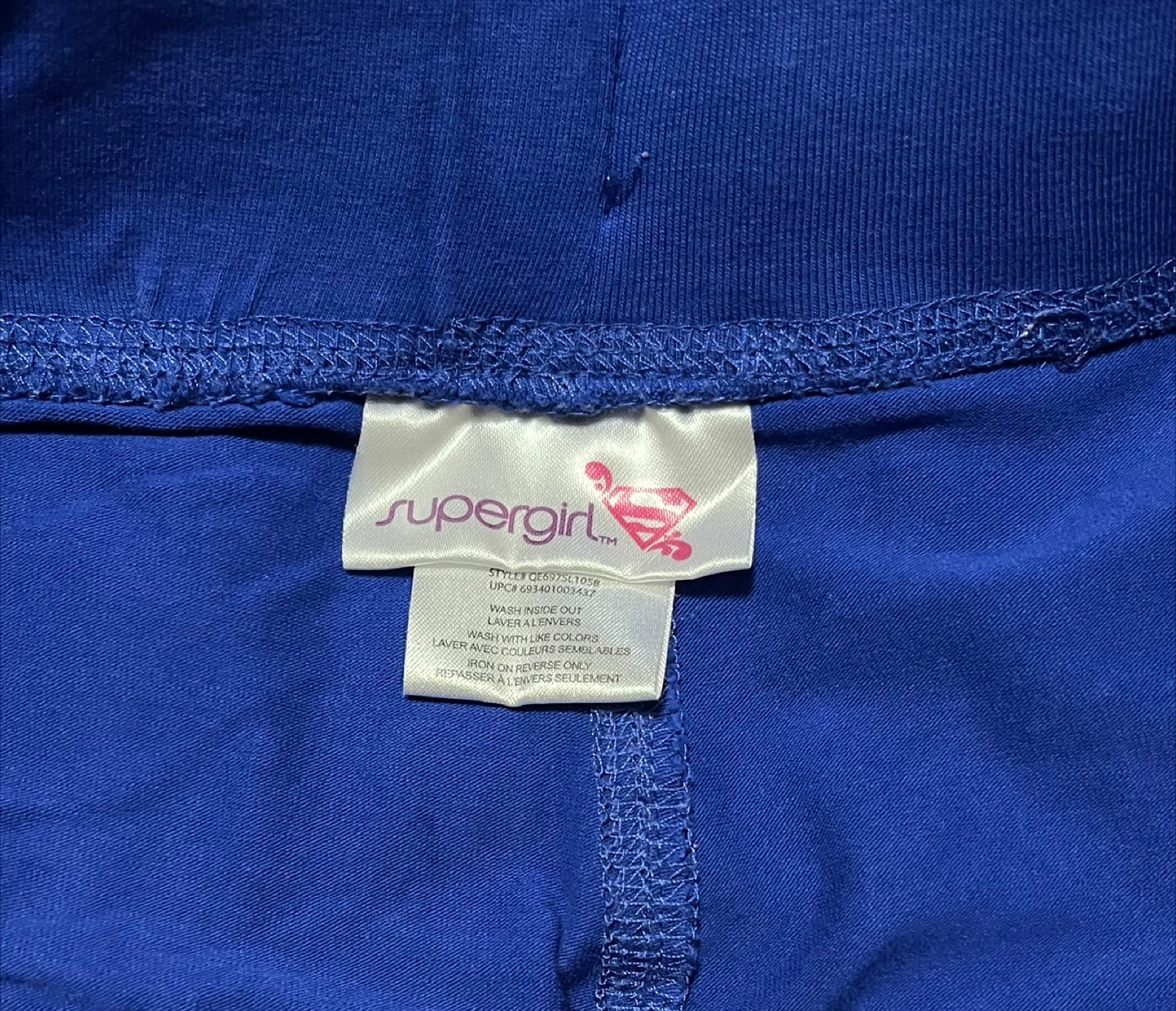 Pink and blue fabric with DC Comics branding (superwoman). Comfortable and stylish. Cotton.