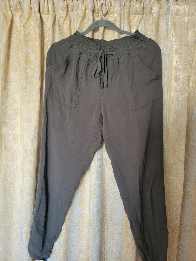 Comfy olive green lounge pants with a drawstring waist! Perfect for relaxing at home or running errands. They're in great condition and ready for a new home