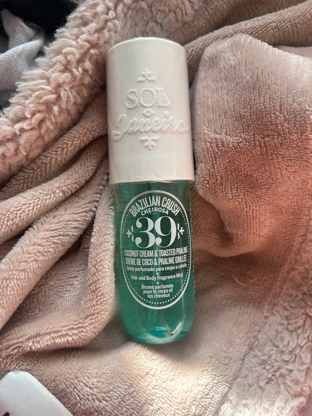 Selling a Sol de Janeiro Brazilian Crush Cheirosa '39 Hair and Body Fragrance Mist. This mist entices with delicious, mouthwatering notes of coconut cream and toasted praline. Perfect for a refreshing spritz anytime!