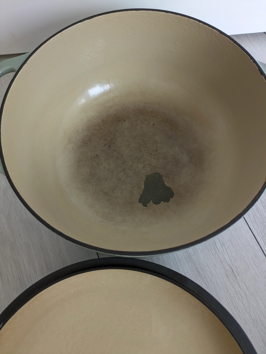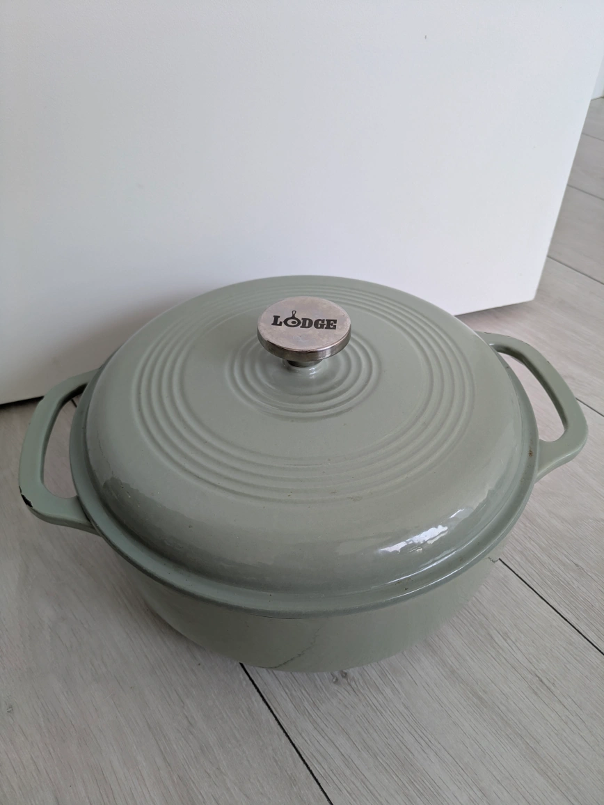I have a large 5.7L dutch oven pot (sage green) wanting to upcycle it instead of throwing into garbage. The bottom enamel has chipped, so it is not safe to use it for cooking anymore. I did a quick search, one idea is to use it as a planter pot or you can use it for staging the home?
