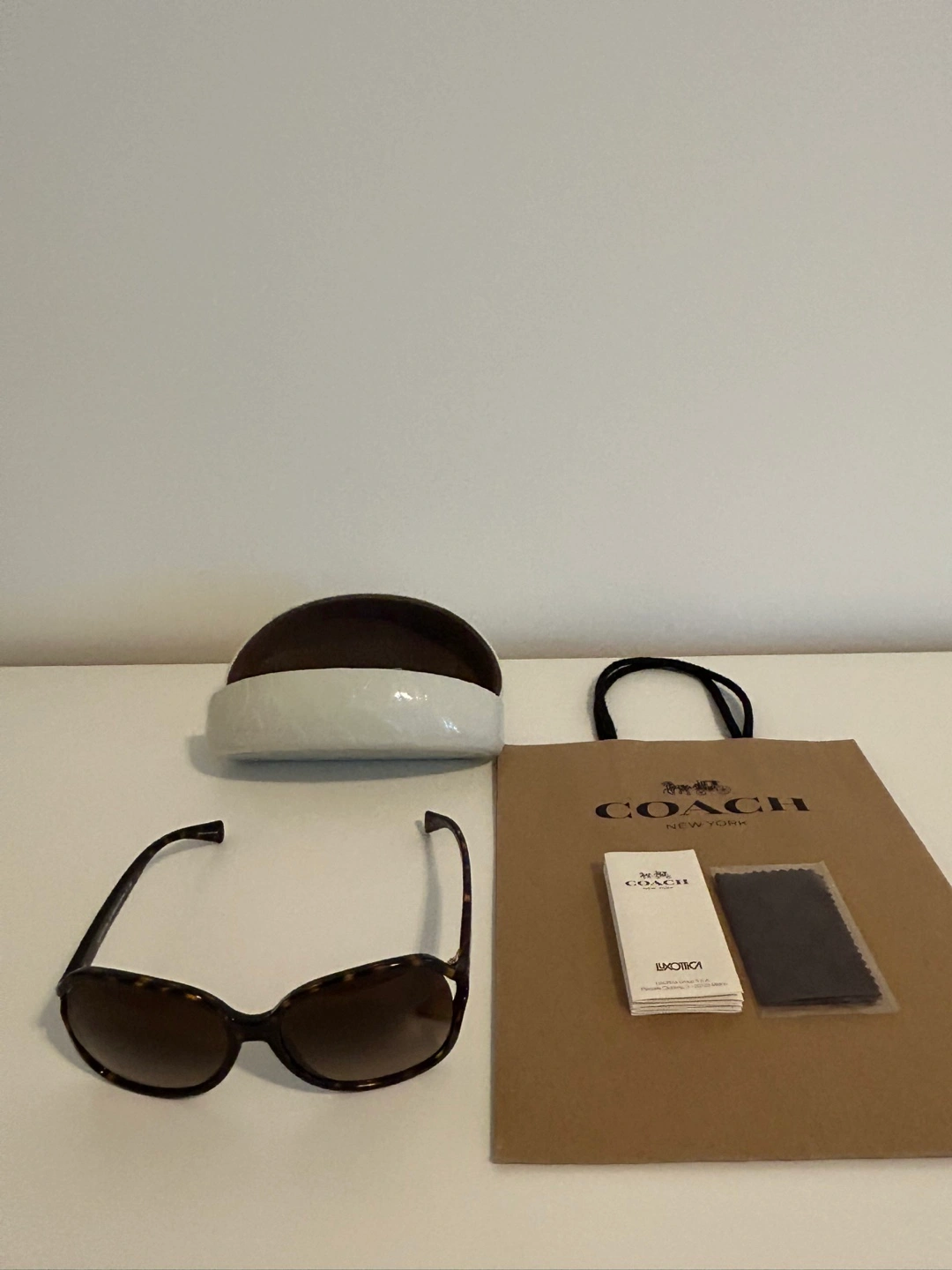 Selling a pair of new Coach HC8188 sunglasses in a tortoise shell pattern! Comes with the original case, cleaning cloth, and Coach bag